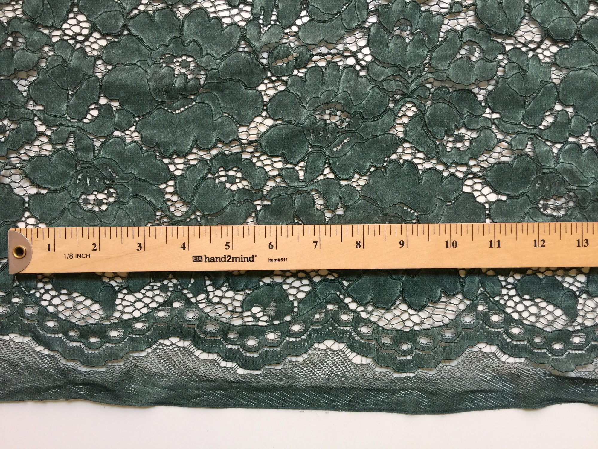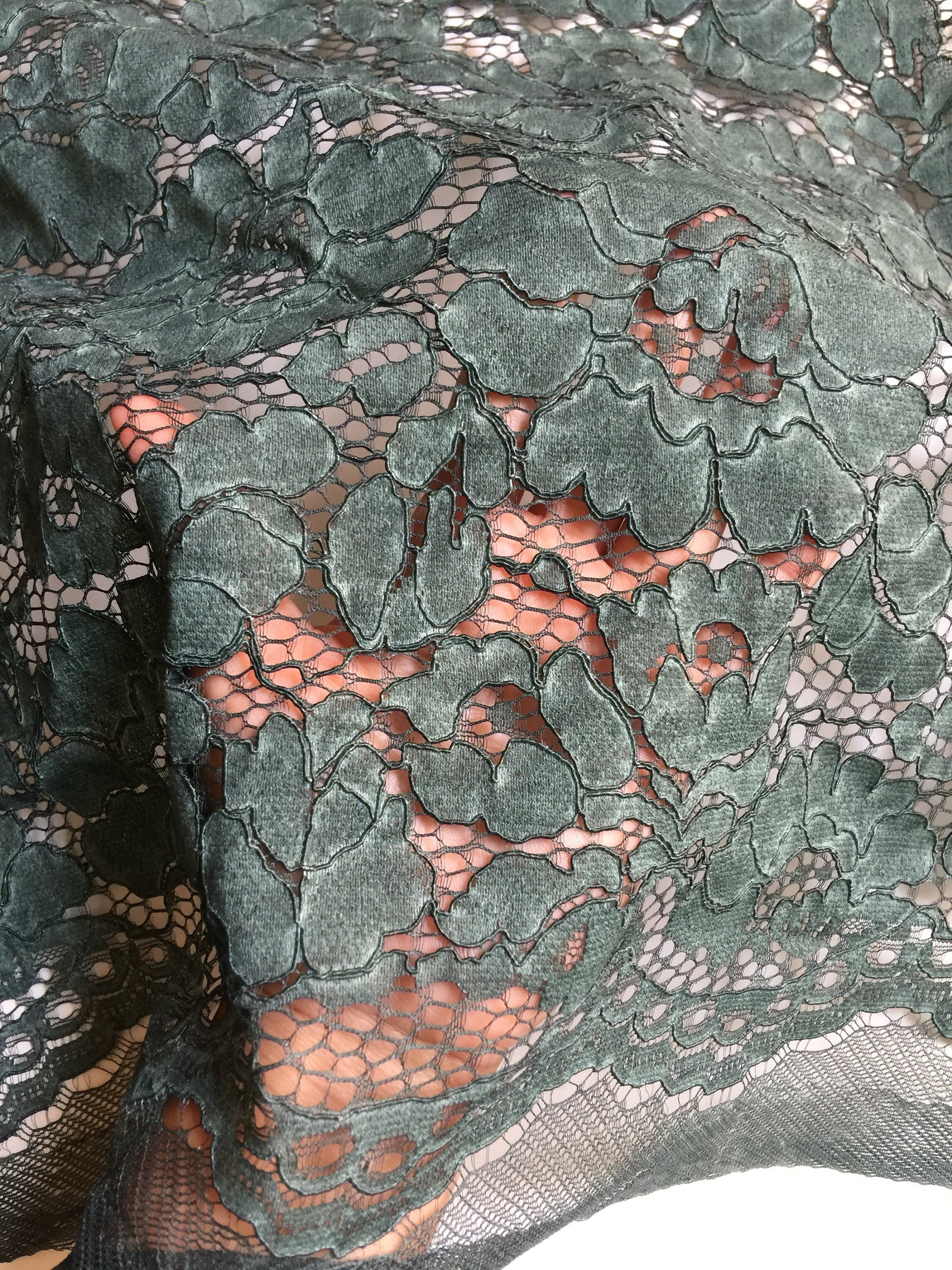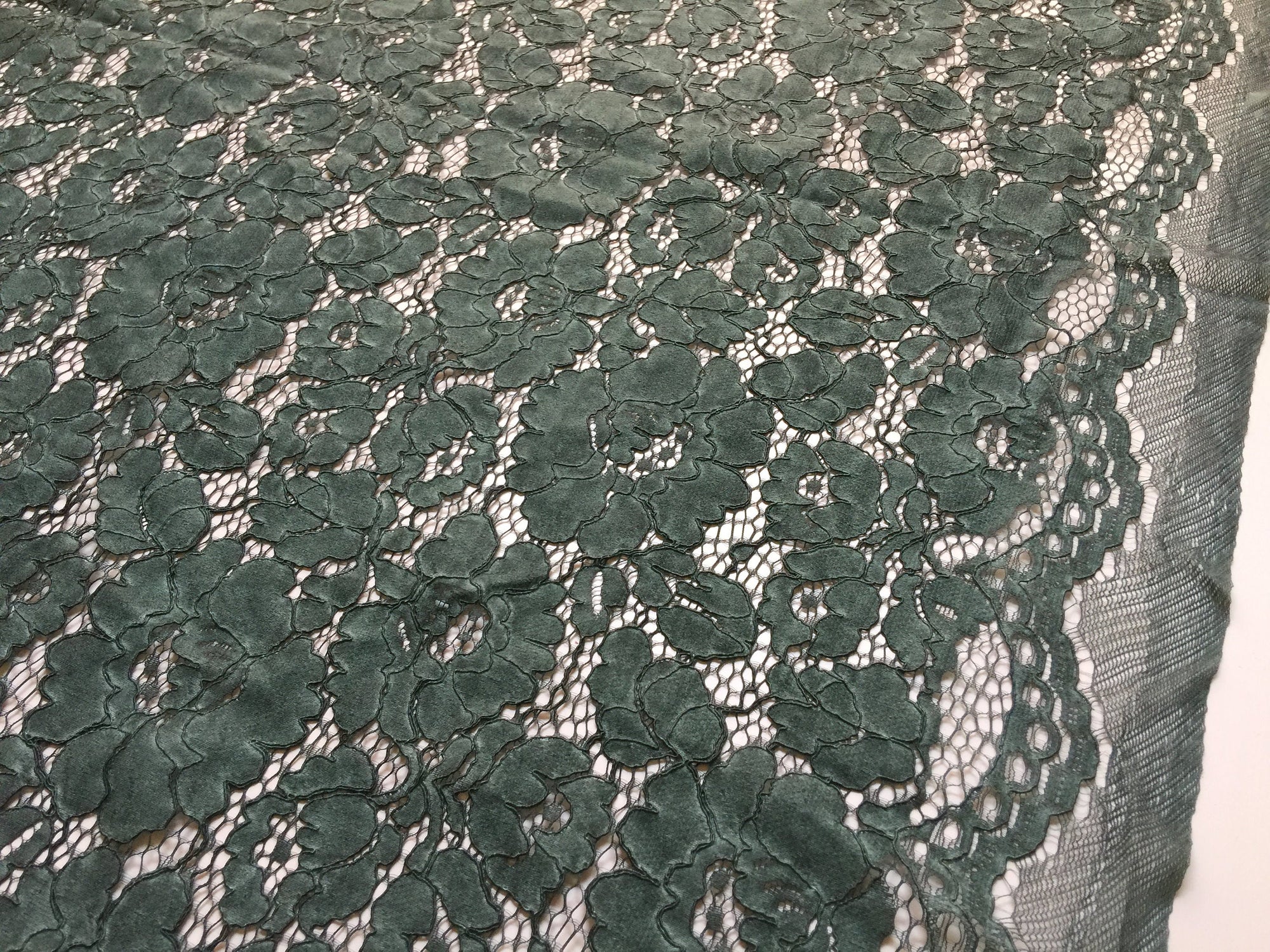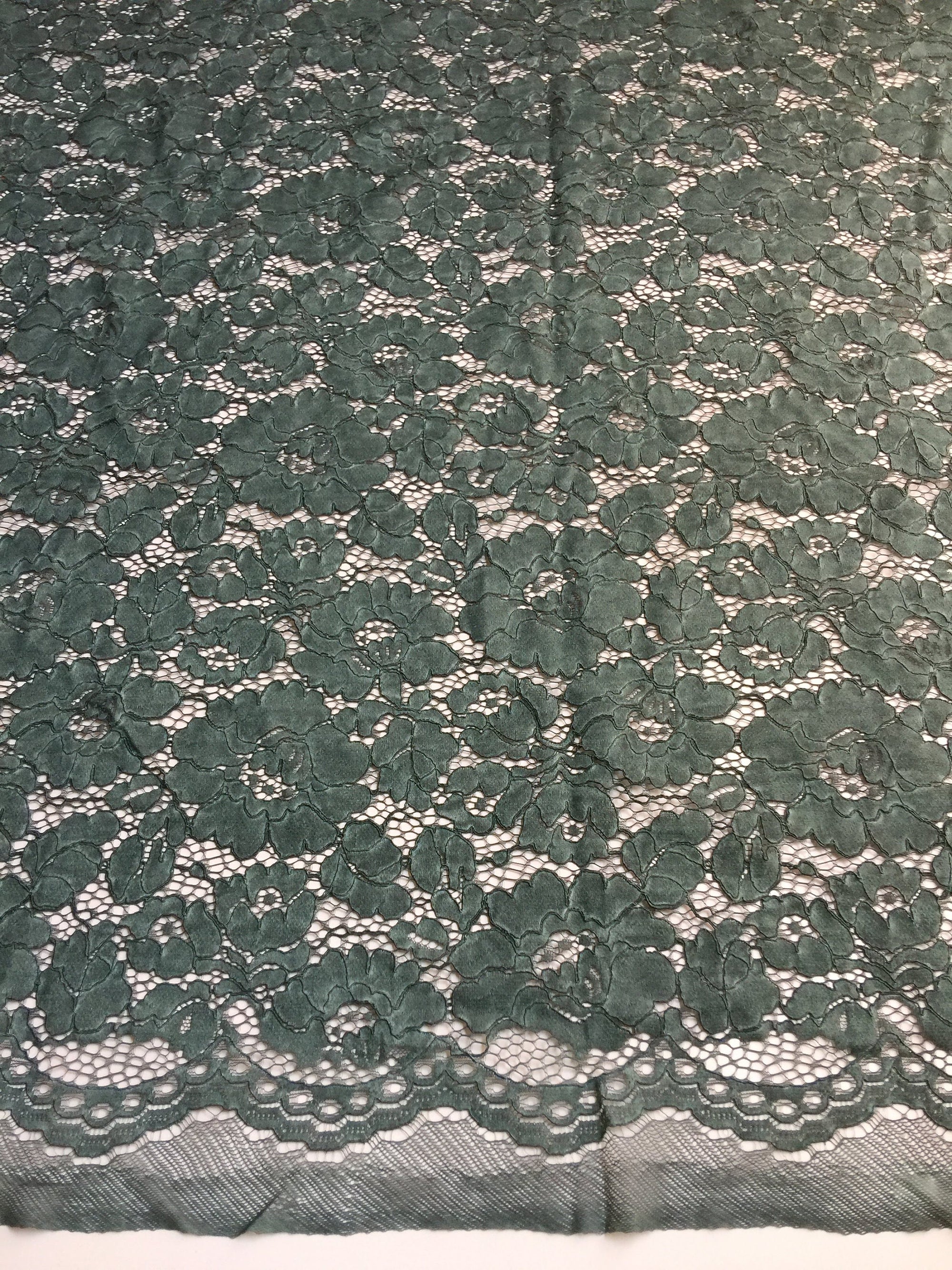 Summer HUNTER GREEN Floral Pattern Double Dyed Flat Lace on Mesh Fabric by the Yard - Style 10069