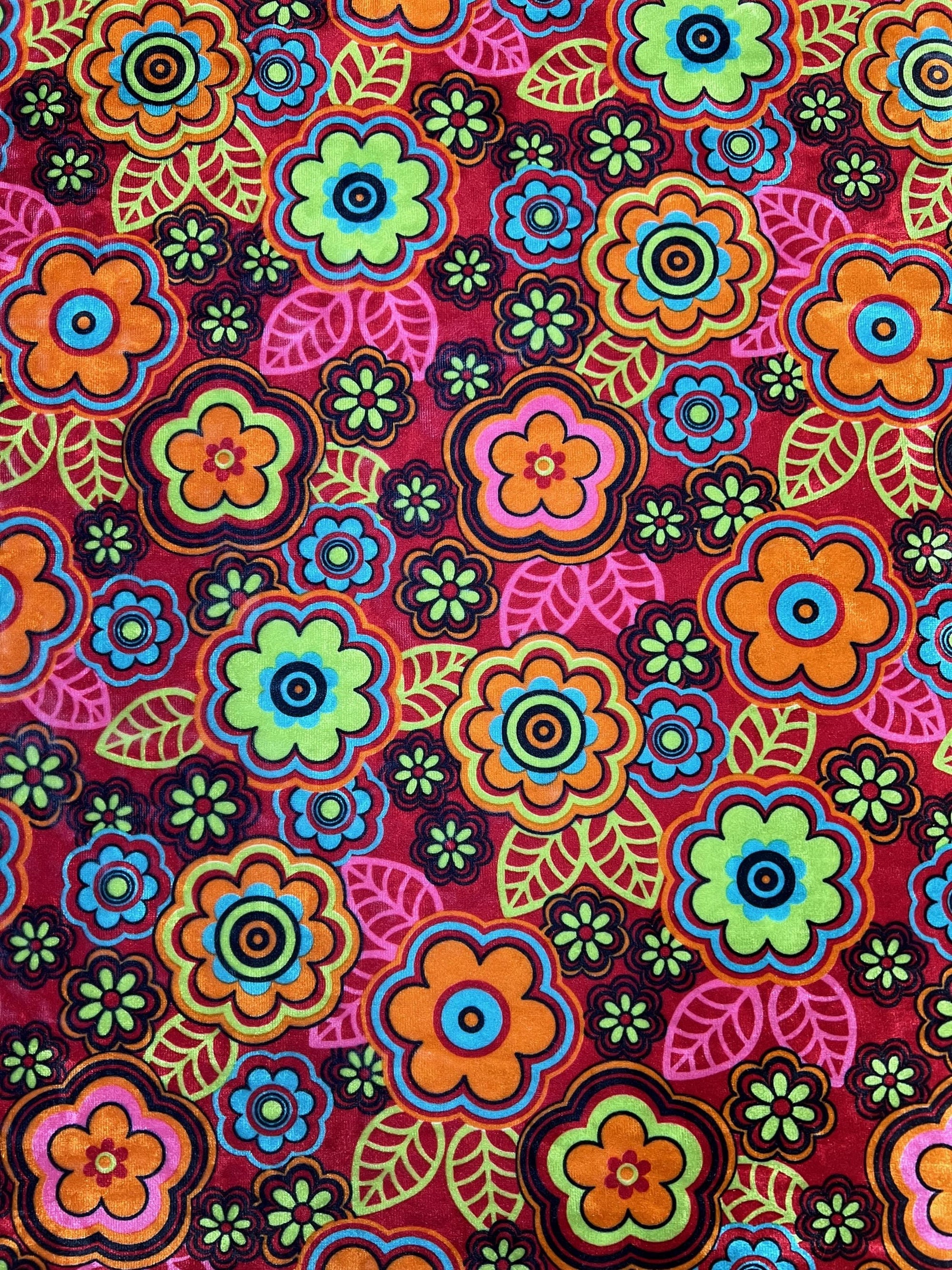 Sutton FLORAL Print 23 on Polyester Stretch Velvet for Bows, Topknot, Scrunchies, Clothes, Costumes, Crafts - 10171