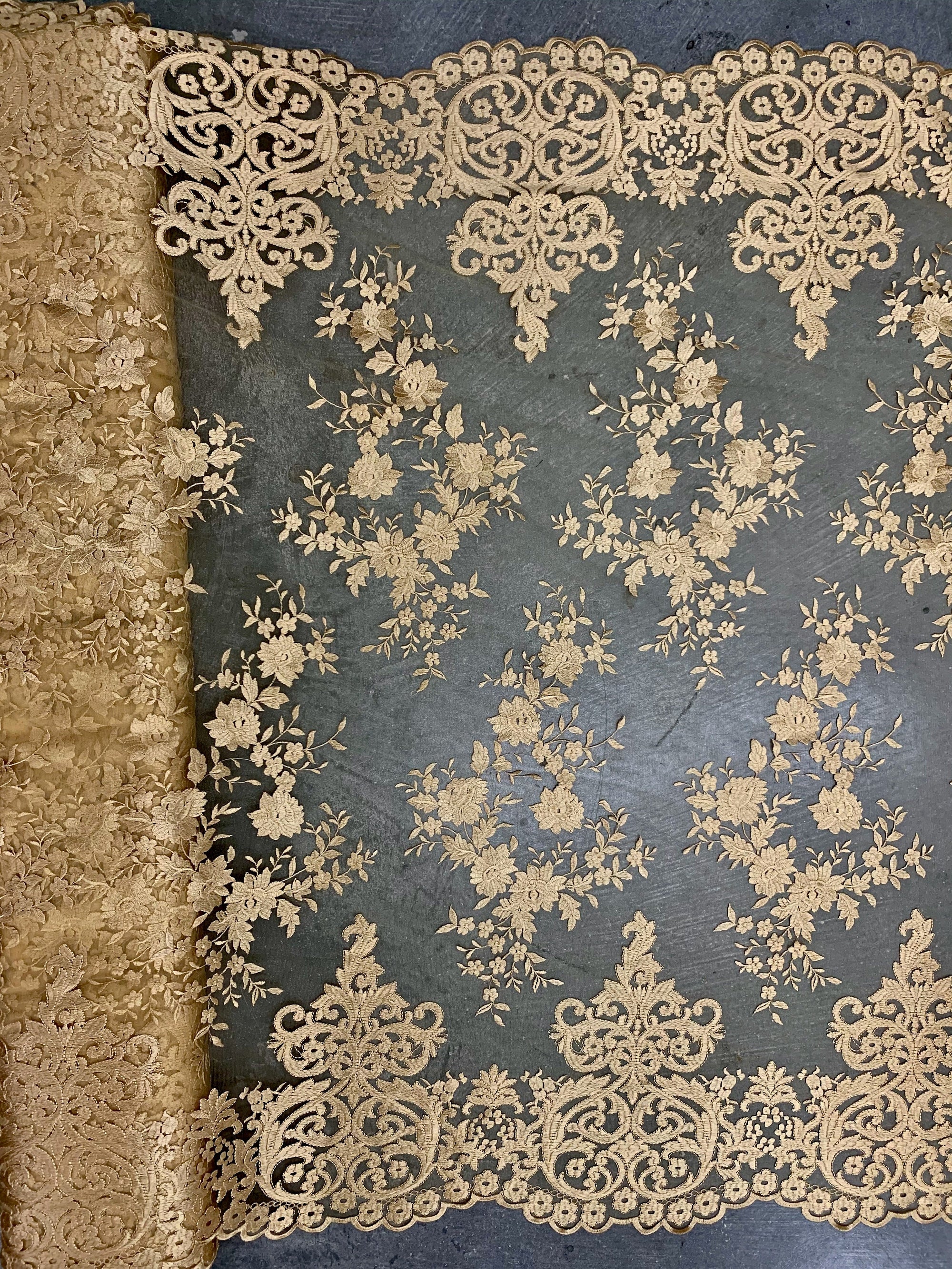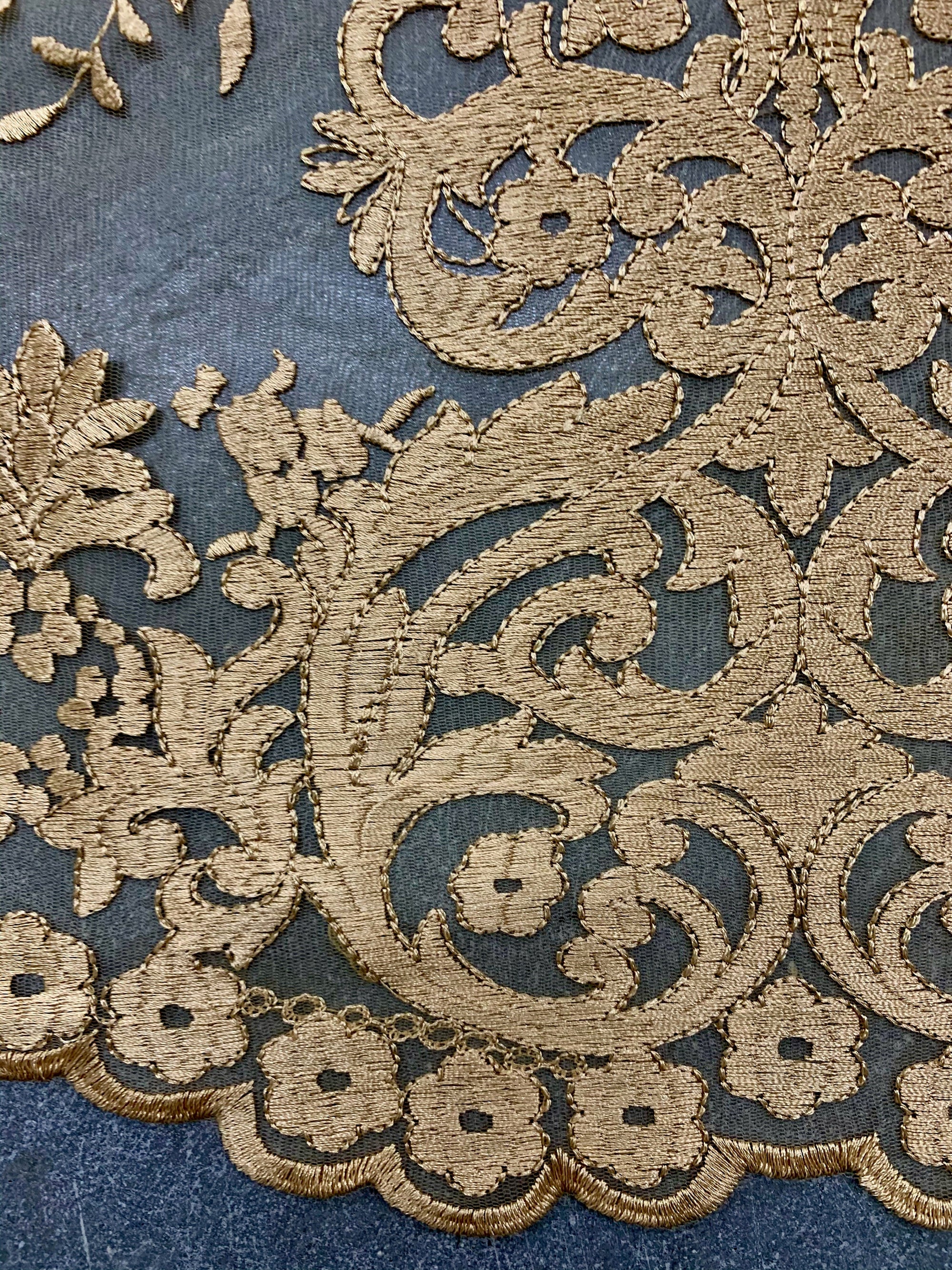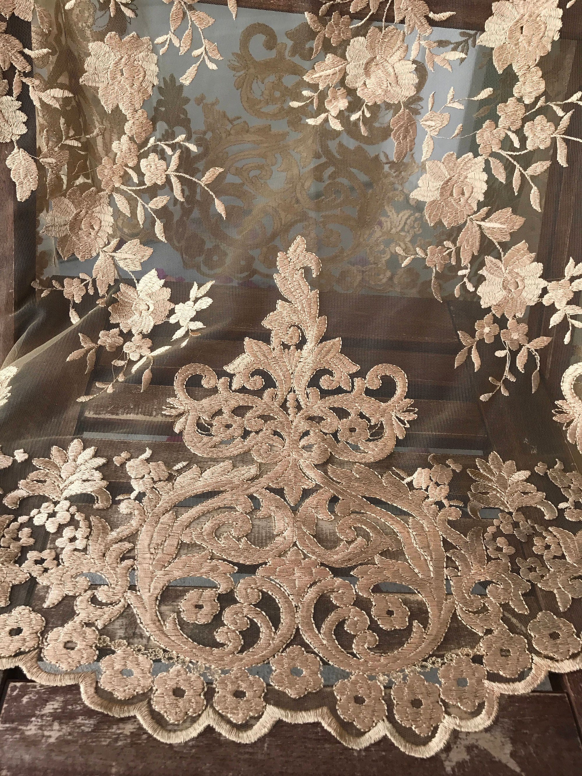 Teagan GOLD Damask Design Embroidered on Mesh Lace Fabric by the Yard - 10027