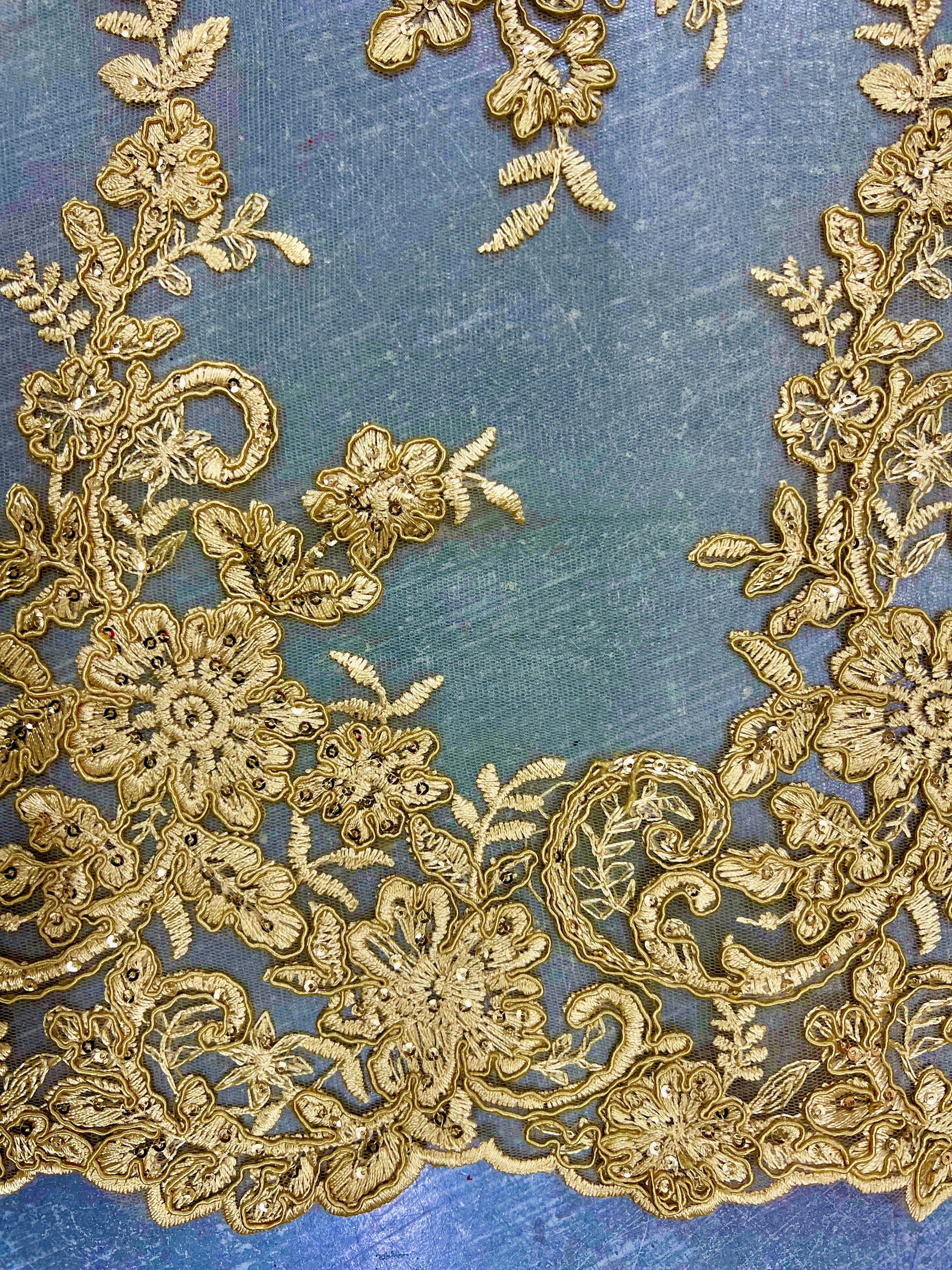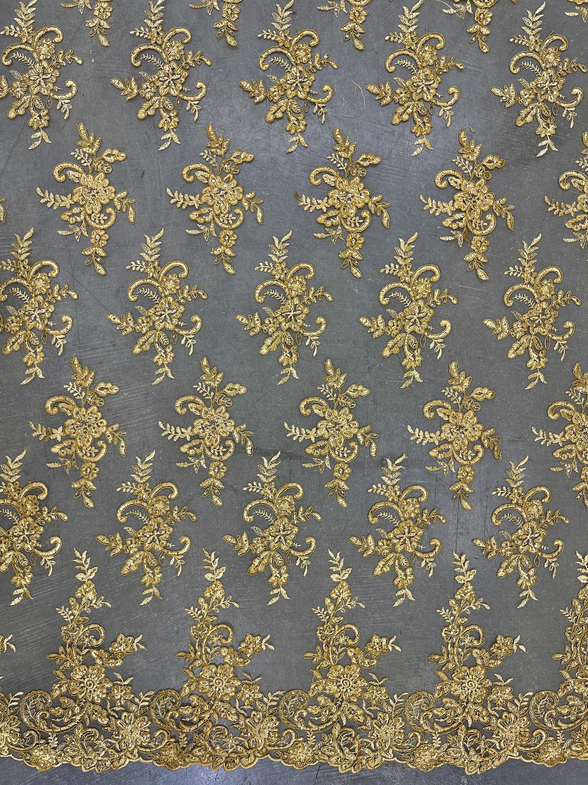 Tess GOLD Polyester Floral Embroidery with Sequins on Mesh Lace Fabric by the Yard - 10216