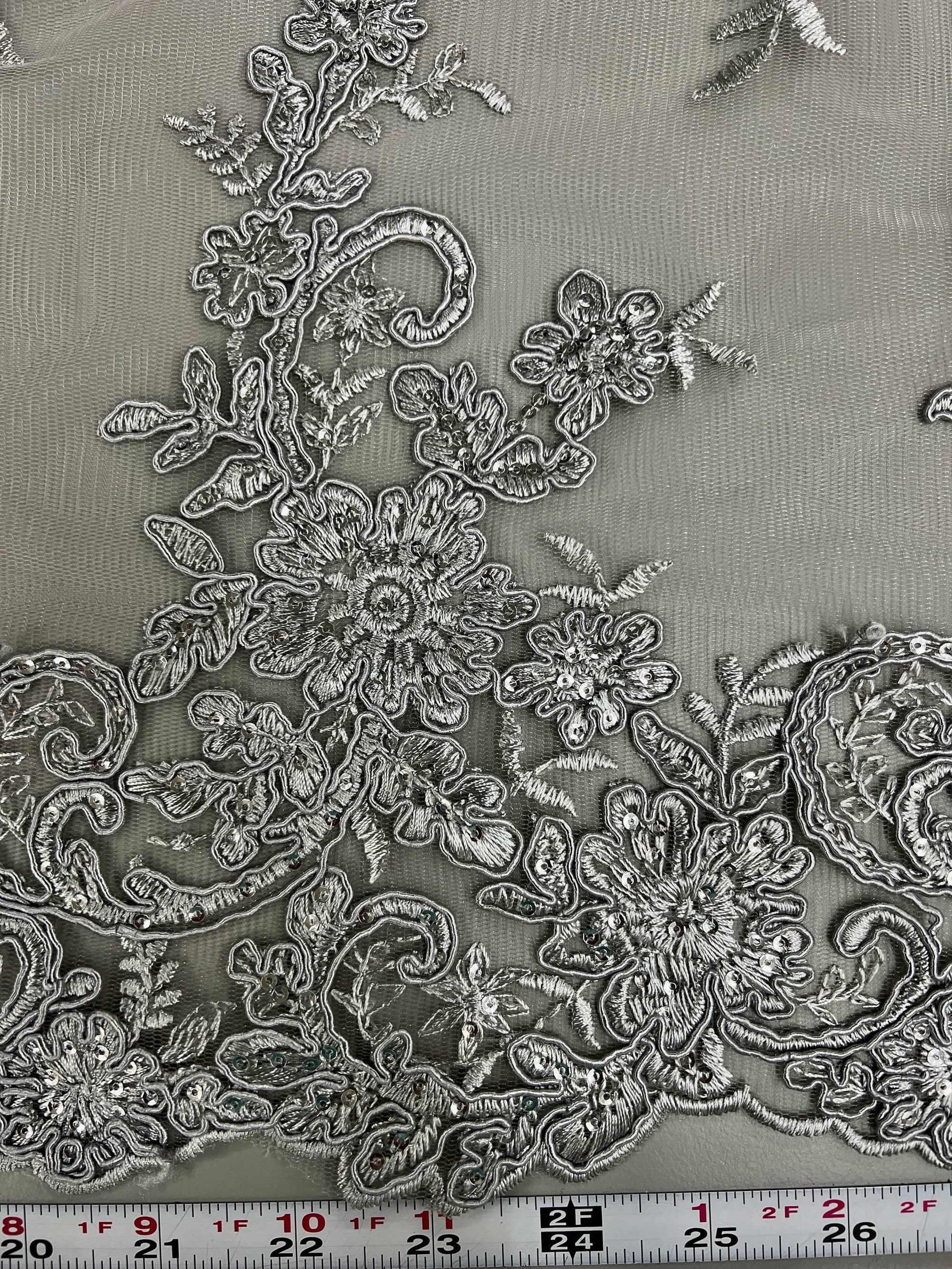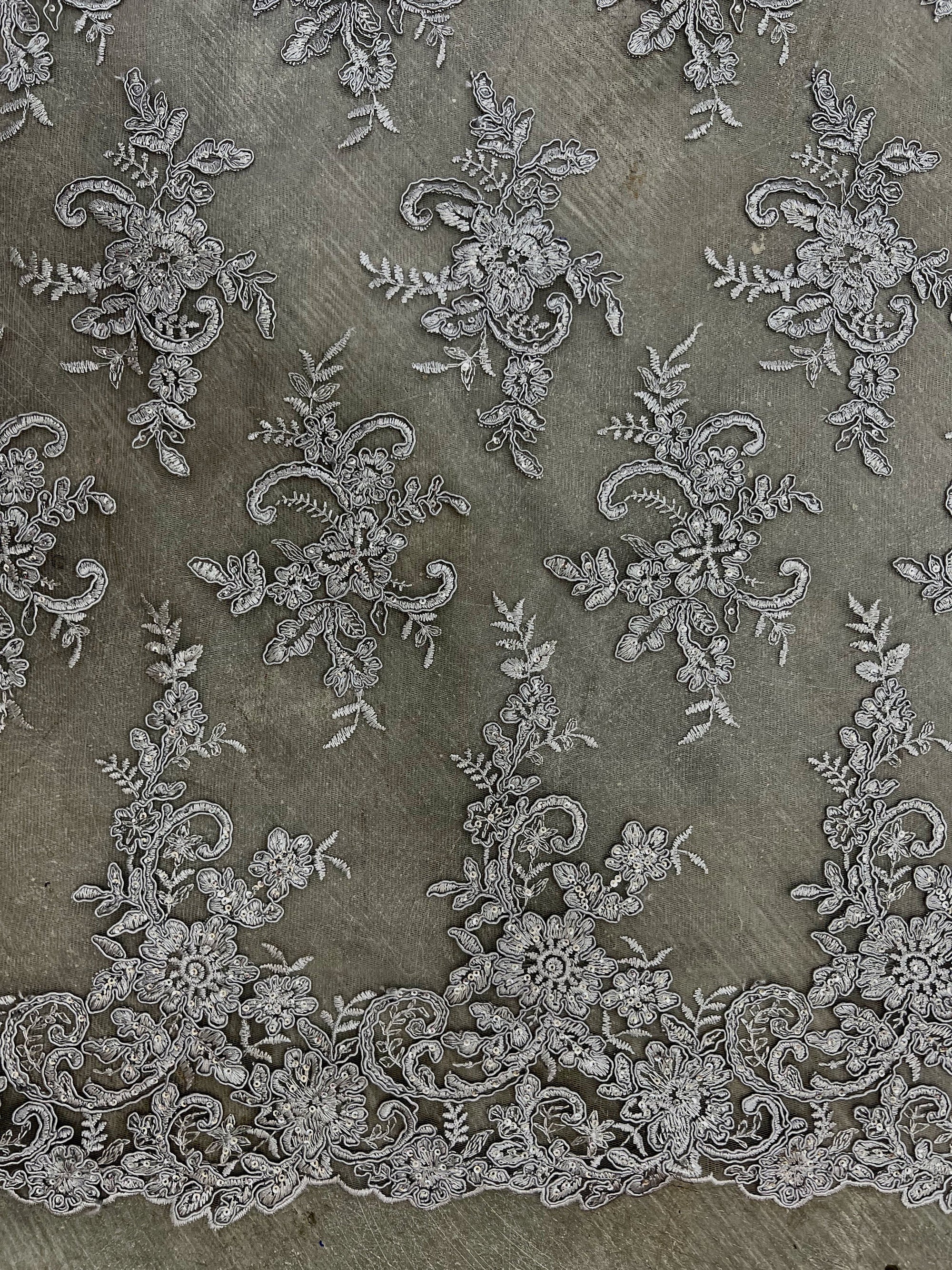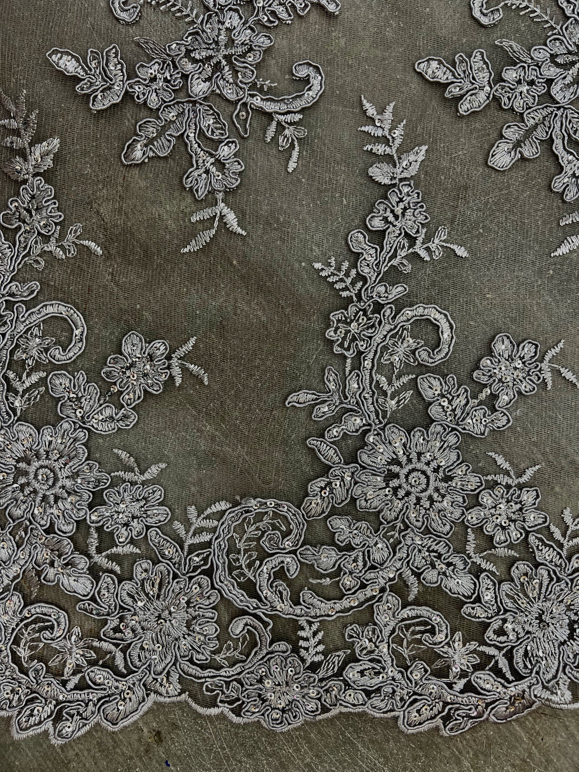 Tess GREY Polyester Floral Embroidery with Sequins on Mesh Lace Fabric by the Yard - 10216
