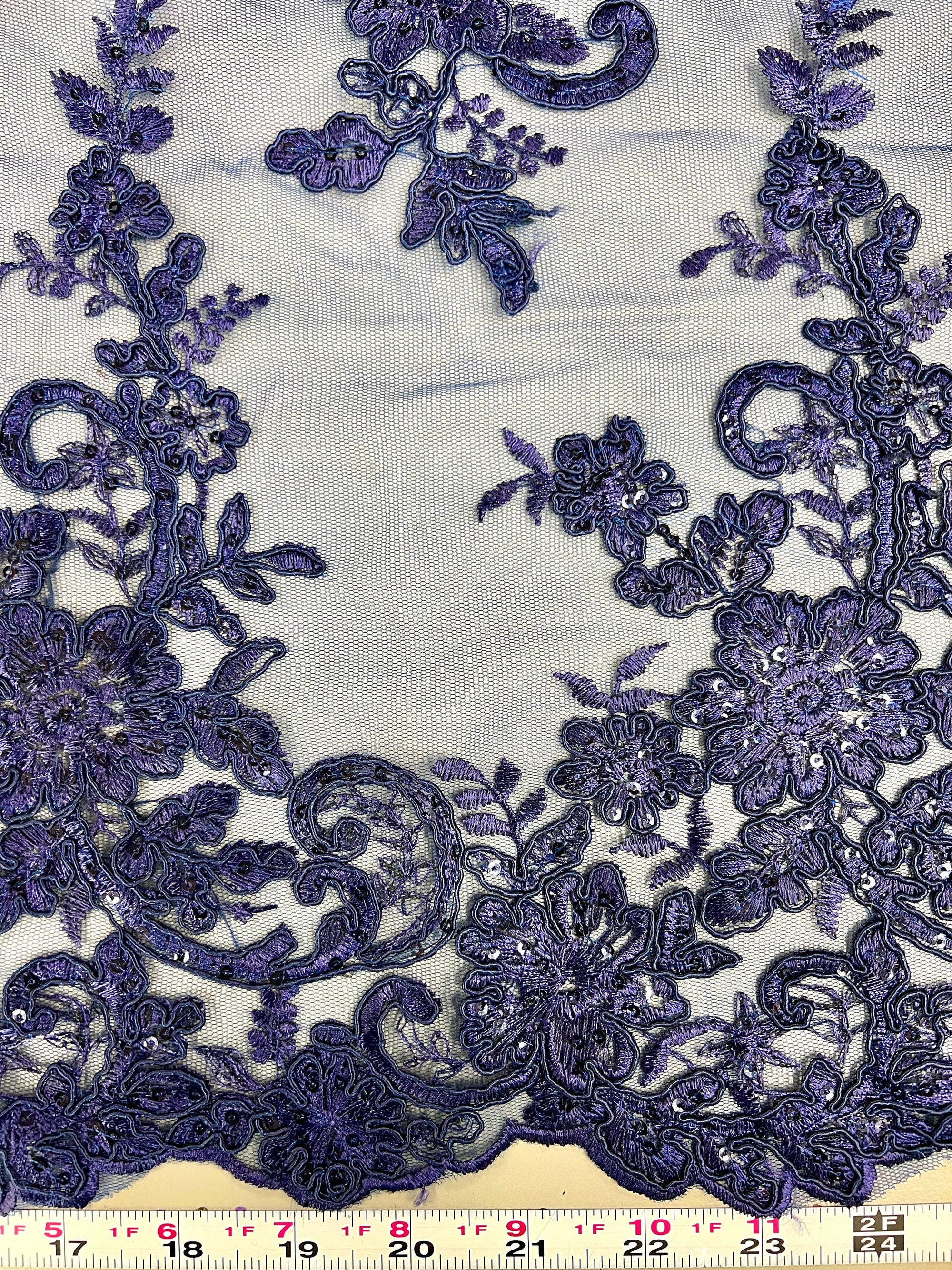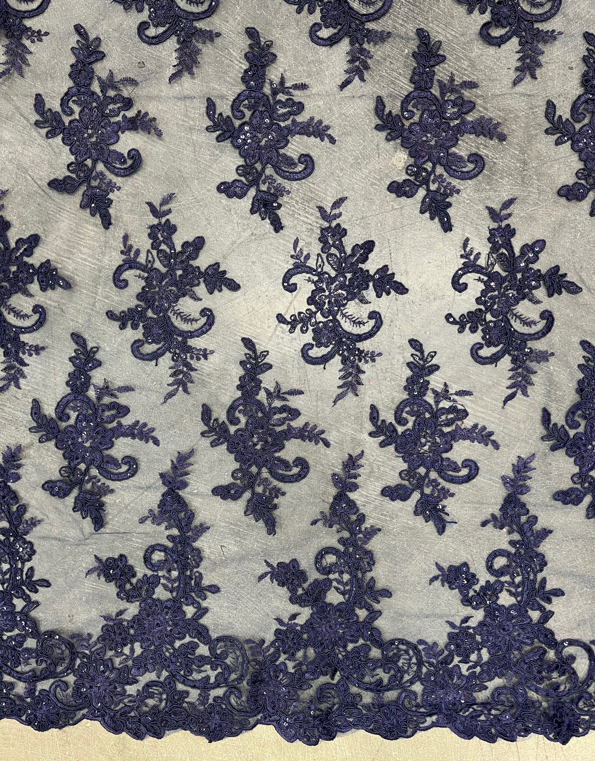 Tess NAVY BLUE Polyester Floral Embroidery with Sequins on Mesh Lace Fabric by the Yard - 10216