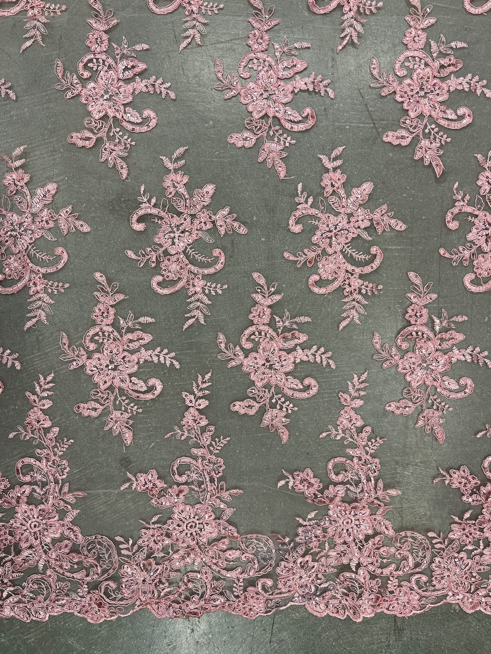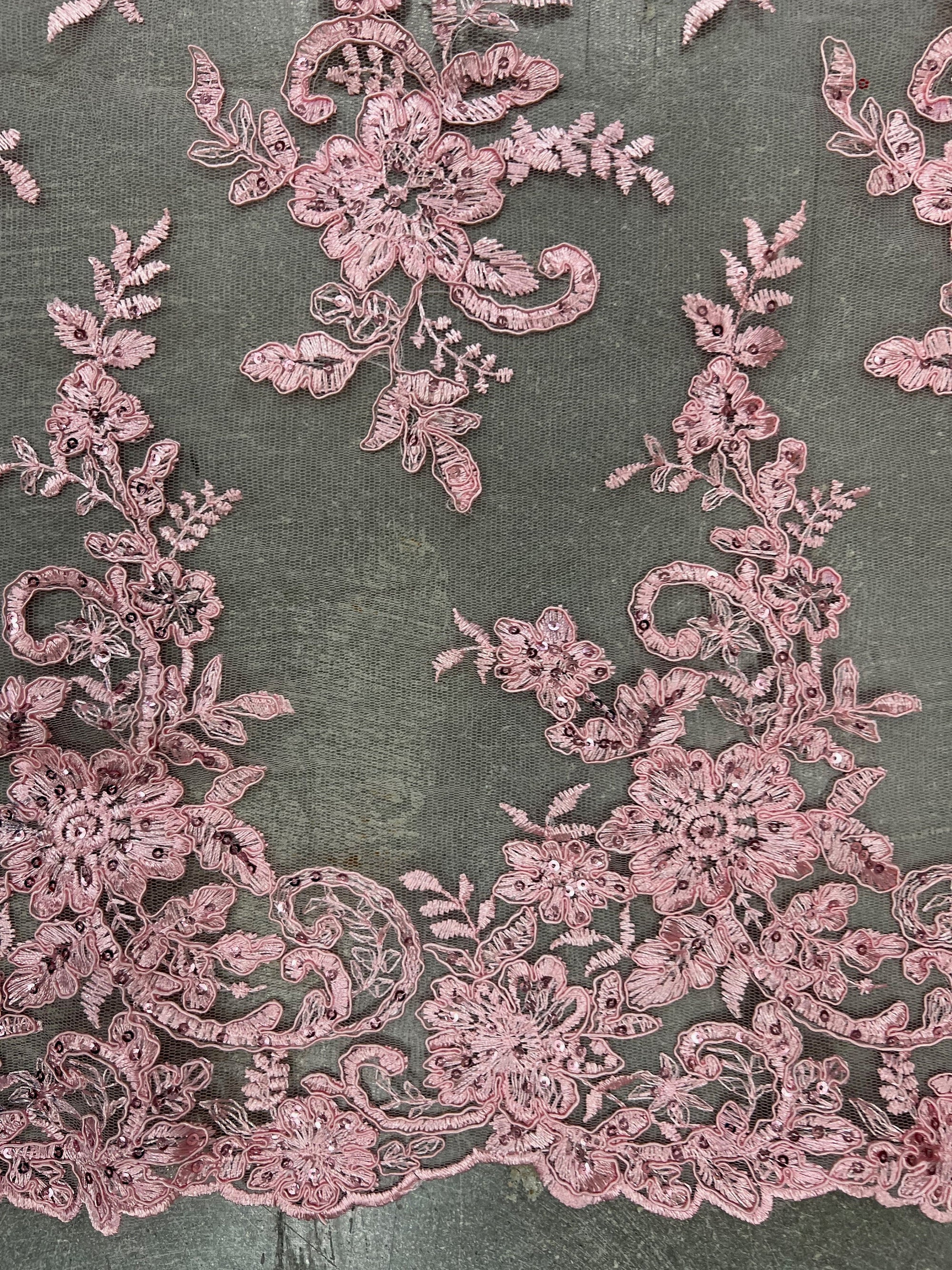 Tess PINK Polyester Floral Embroidery with Sequins on Mesh Lace Fabric by the Yard - 10216