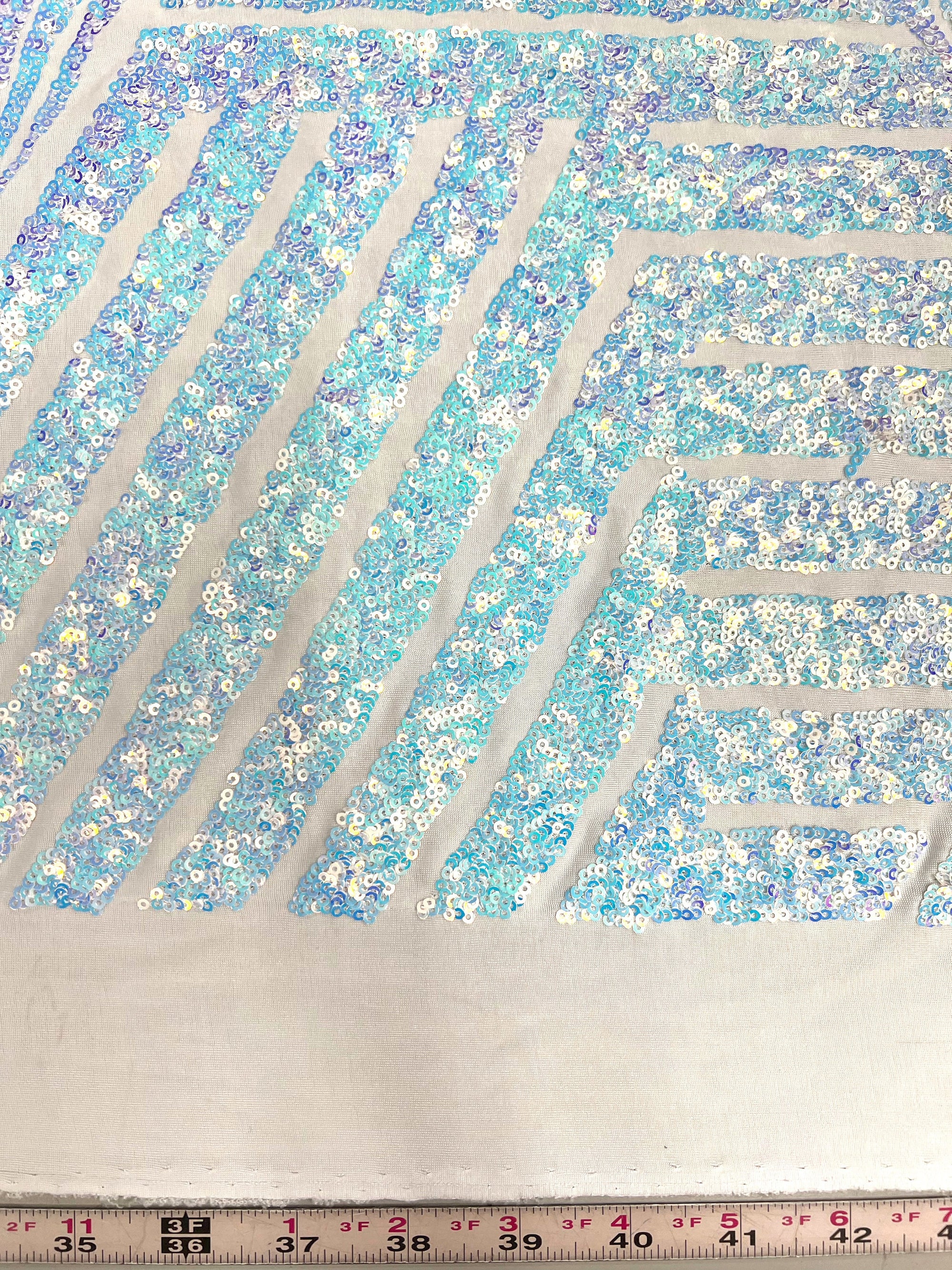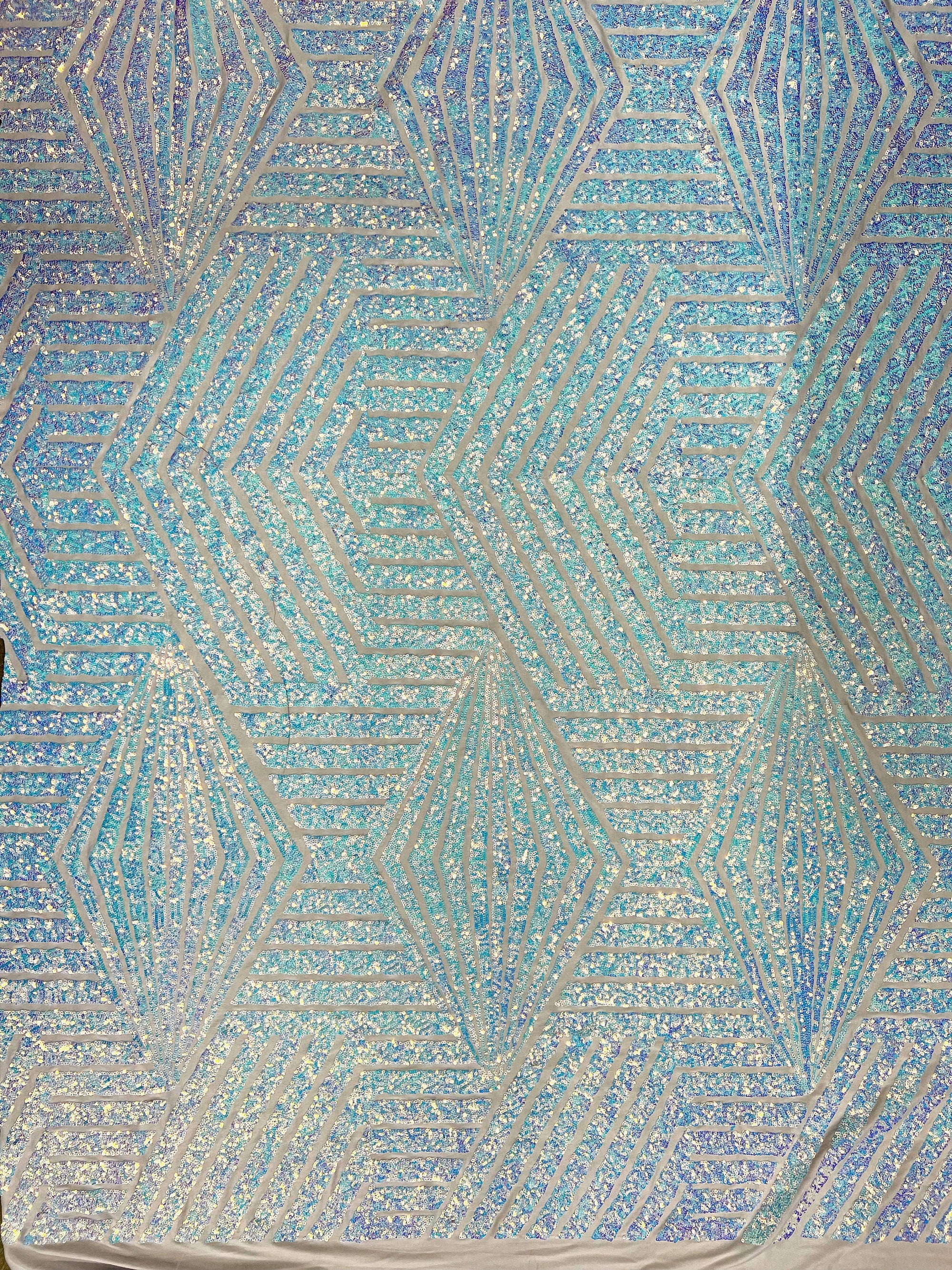 Thea IRIDESCENT WHITE Geometric Sequins Diamond & Stripes on WHITE Poly Spandex Fabric by the Yard - 10026