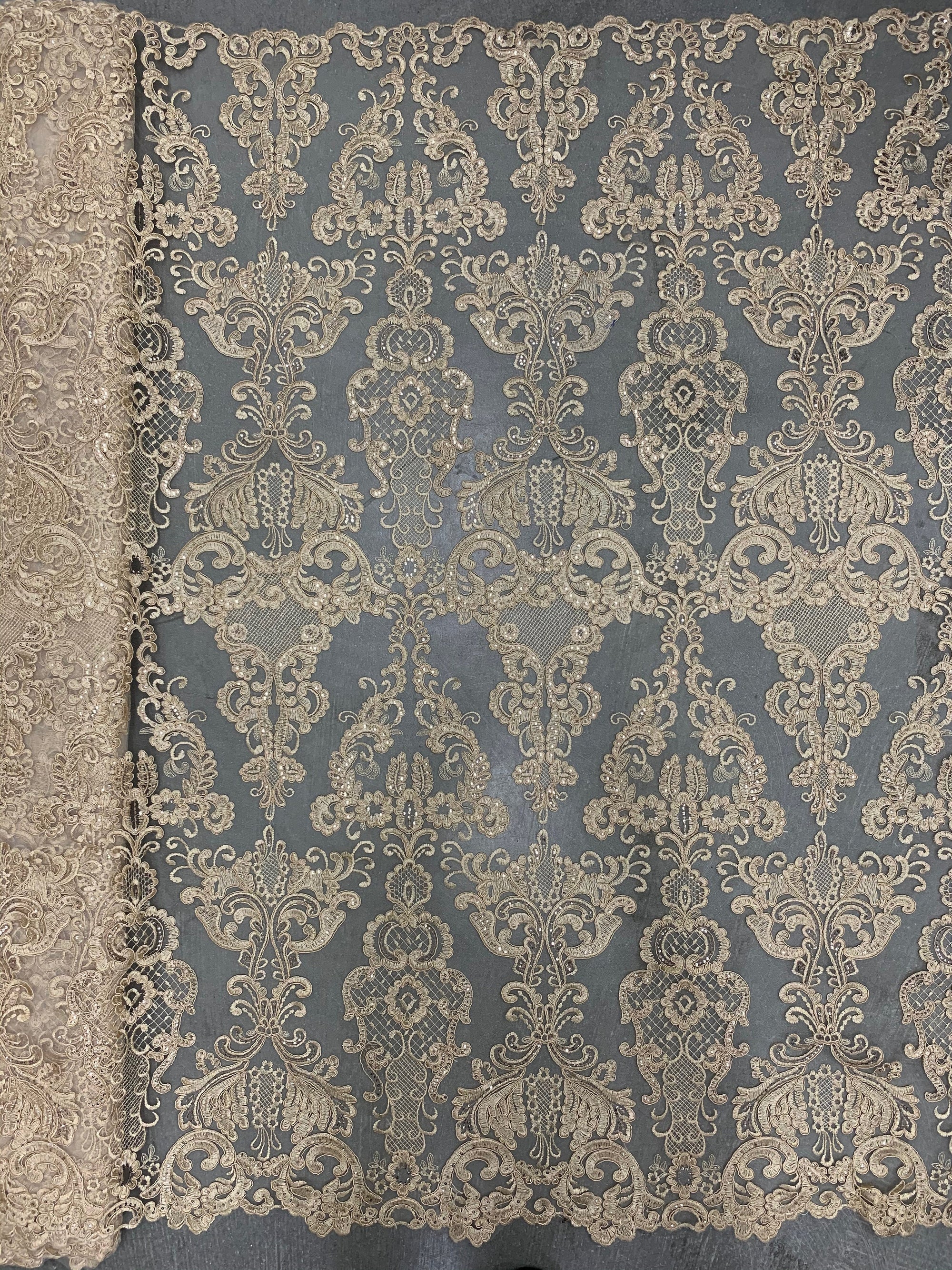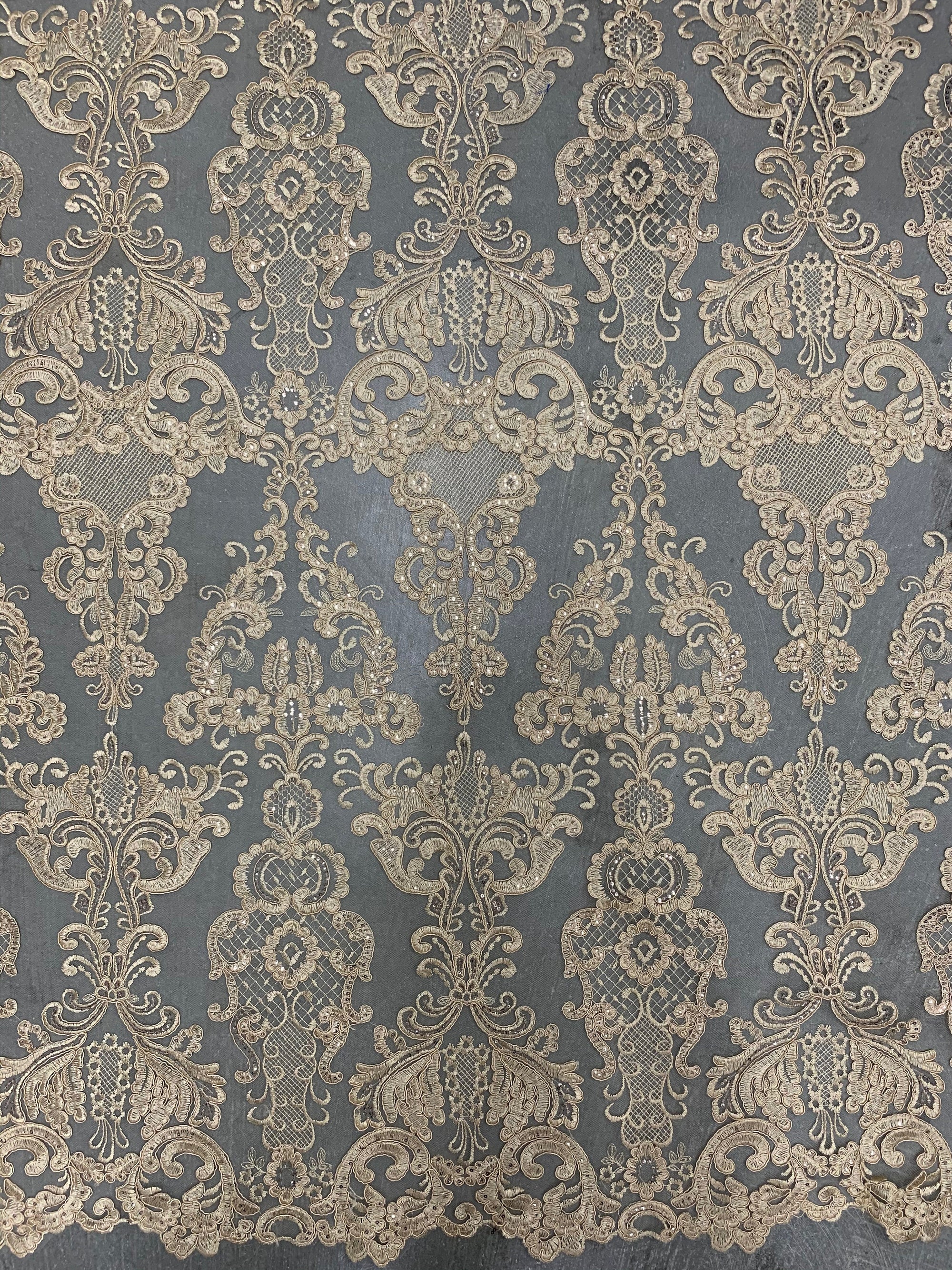 Vivian CHAMPAGNE Polyester Embroidery with Sequins on Mesh Lace Fabric by the Yard for Gown, Wedding, Bridesmaid, Prom - 10003