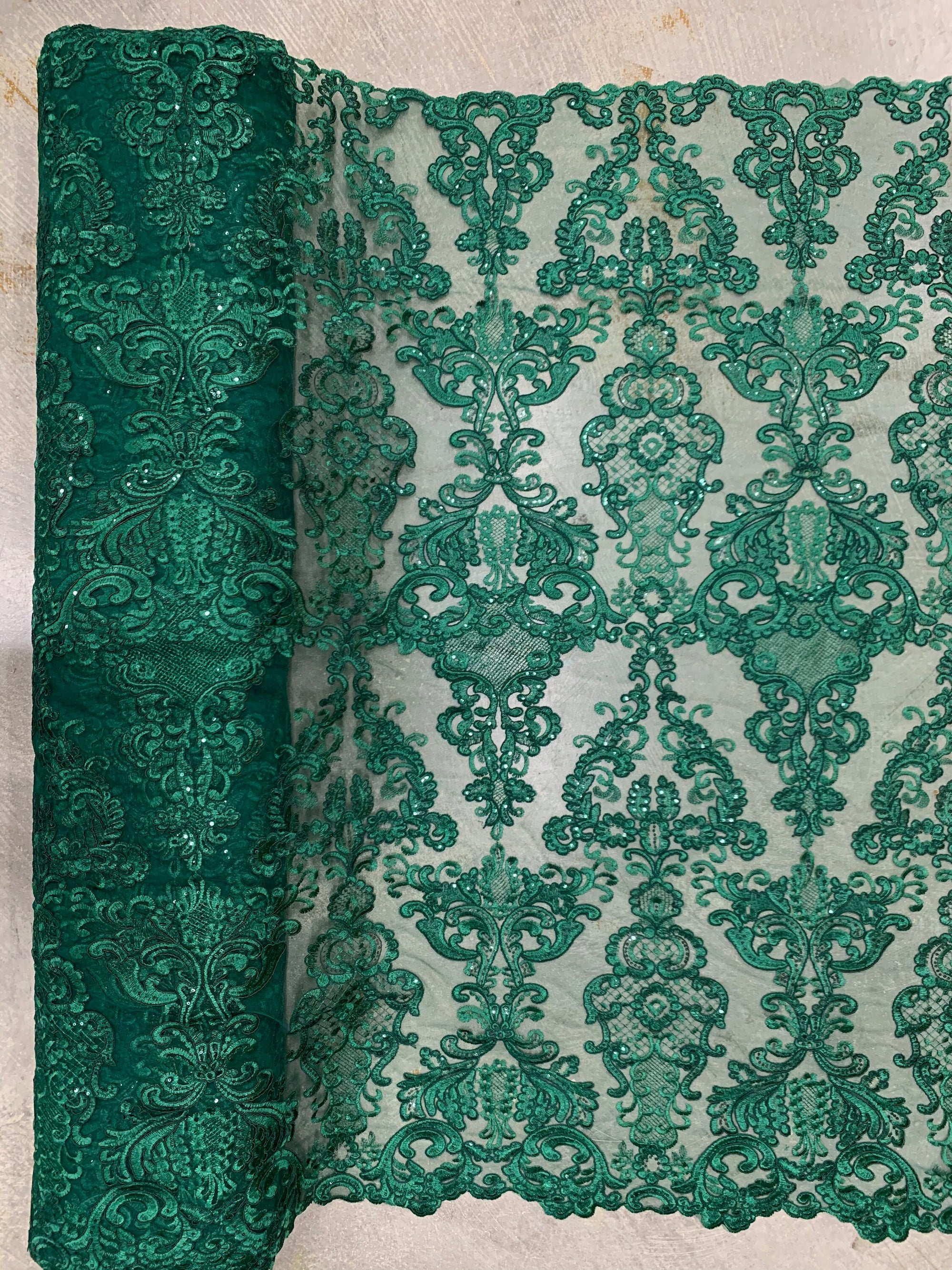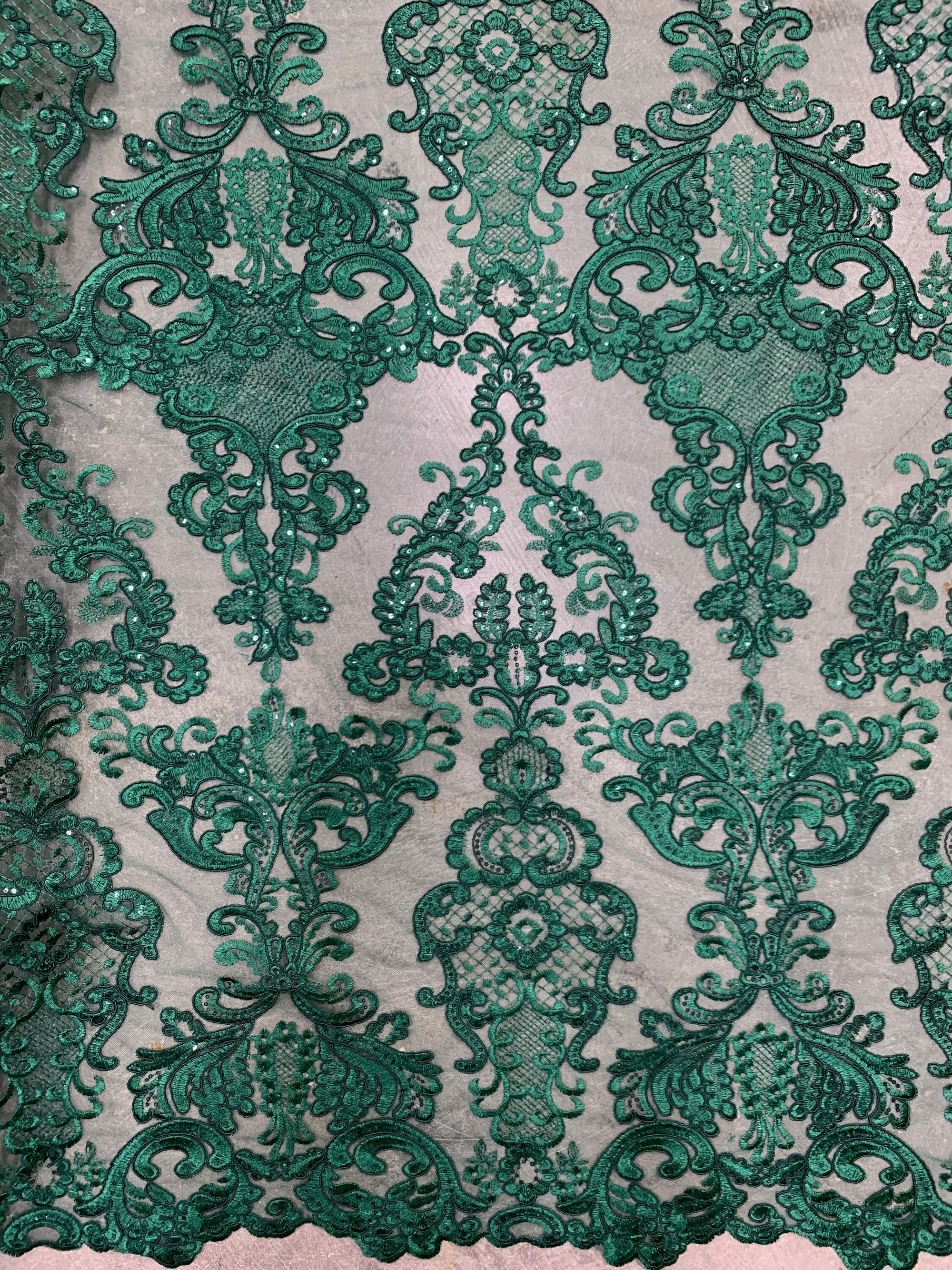Vivian HUNTER GREEN Polyester Embroidery with Sequins on Mesh Lace Fabric by the Yard for Gown, Wedding, Bridesmaid, Prom - 10003