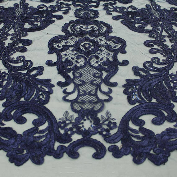 Vivian NAVY BLUE Polyester Embroidery with Sequins on Mesh Lace Fabric by the Yard for Gown, Wedding, Bridesmaid, Prom - 10003