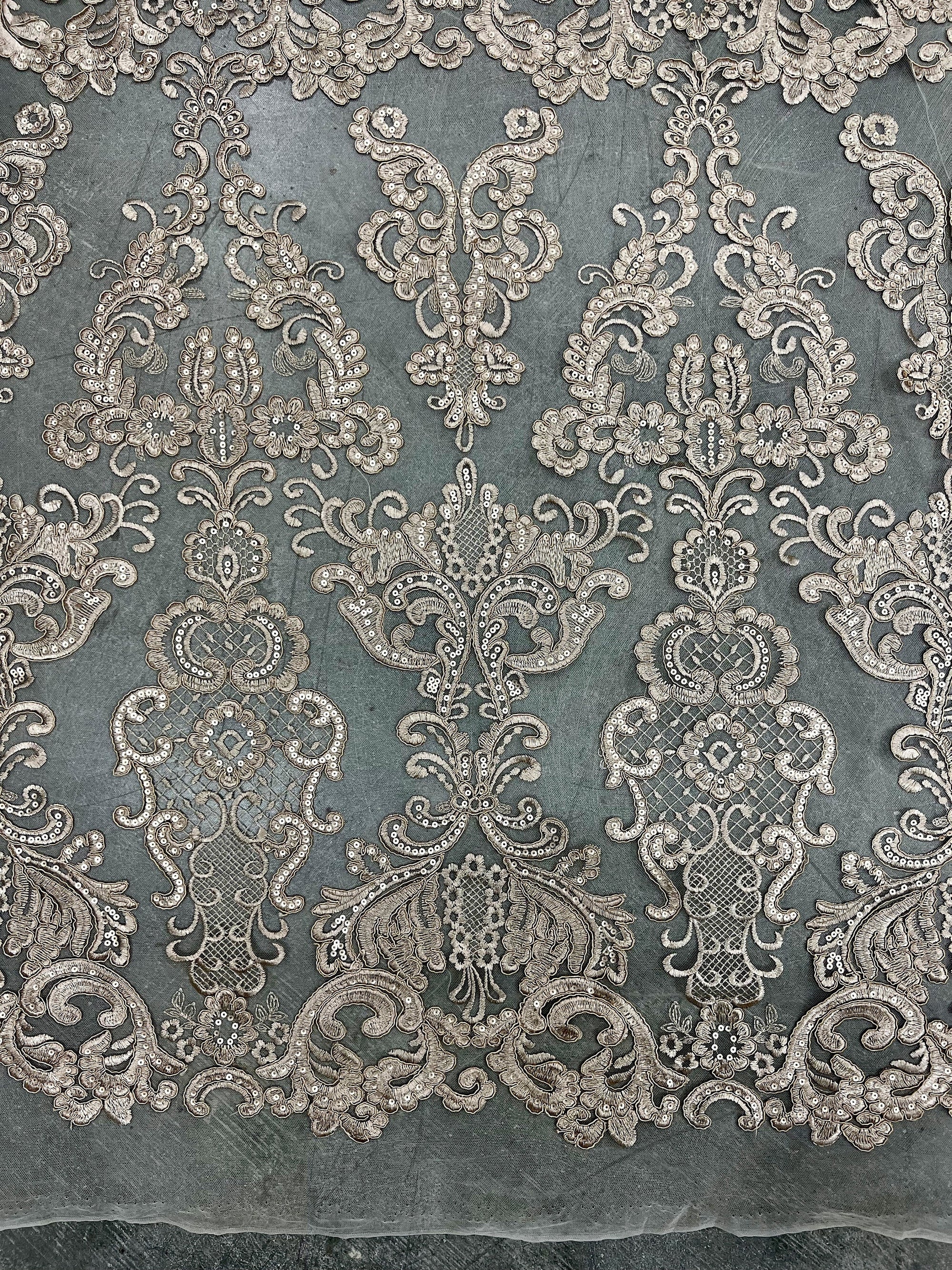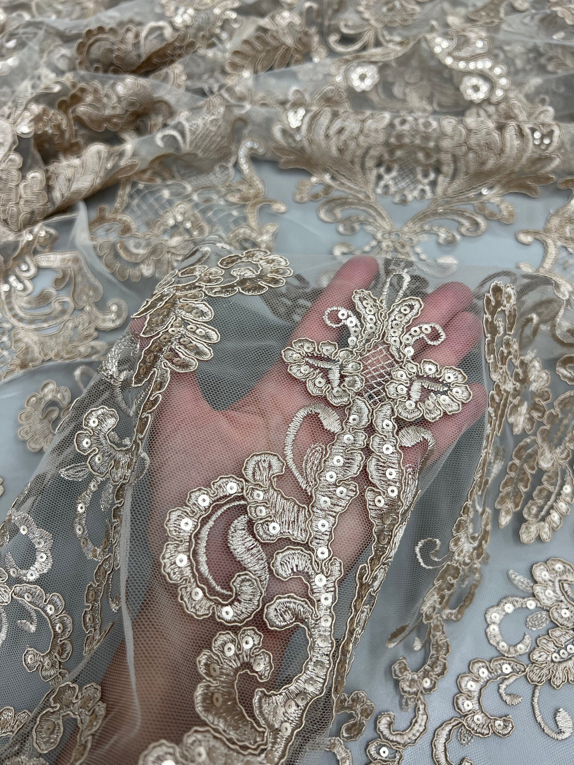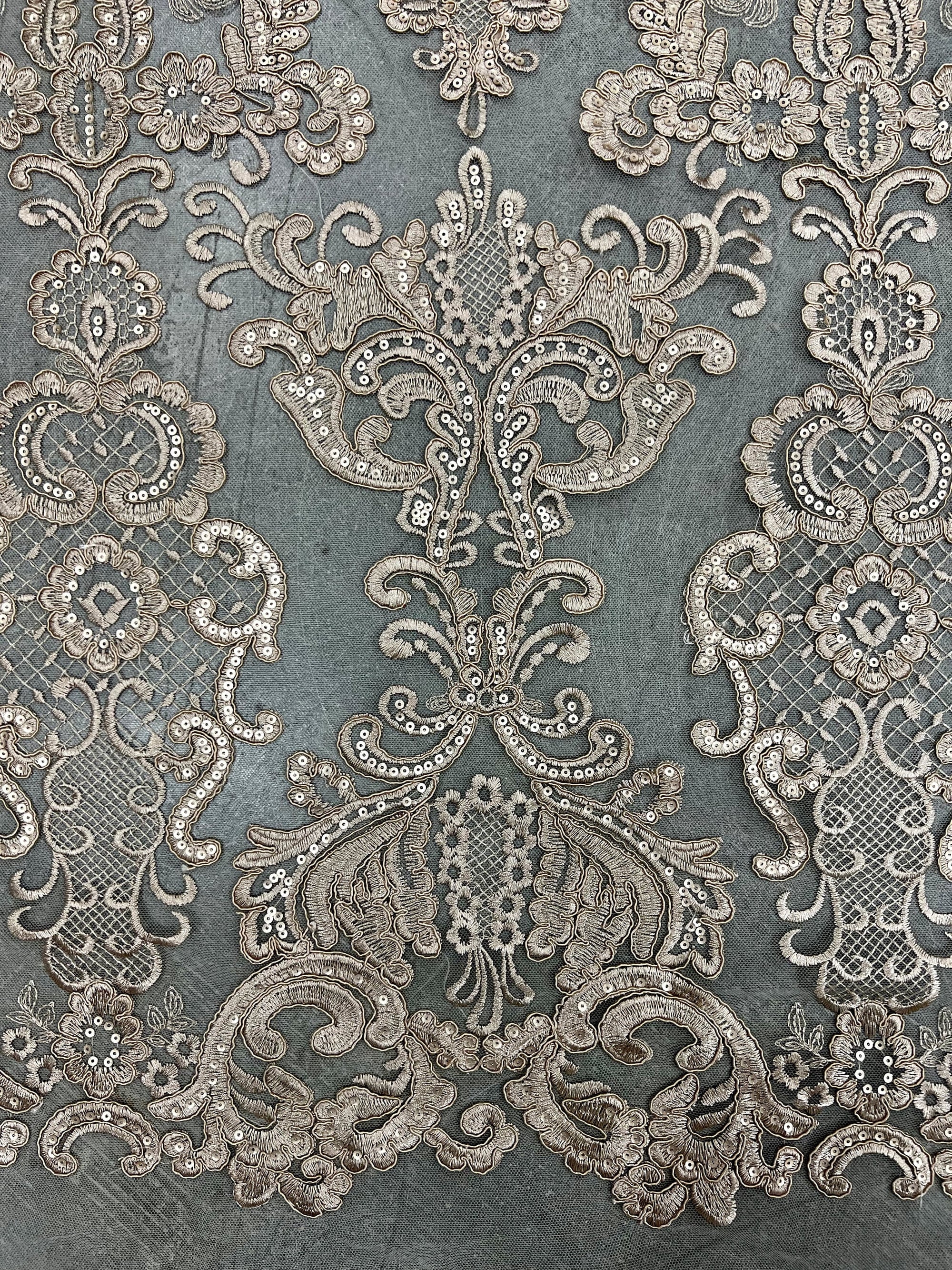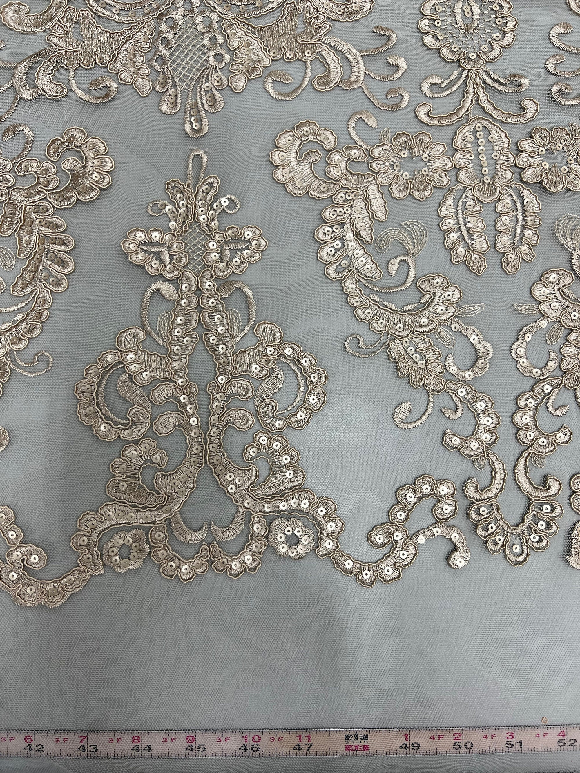 Vivian TAUPE Polyester Embroidery with Sequins on Mesh Lace Fabric by the Yard for Gown, Wedding, Bridesmaid, Prom - 10003