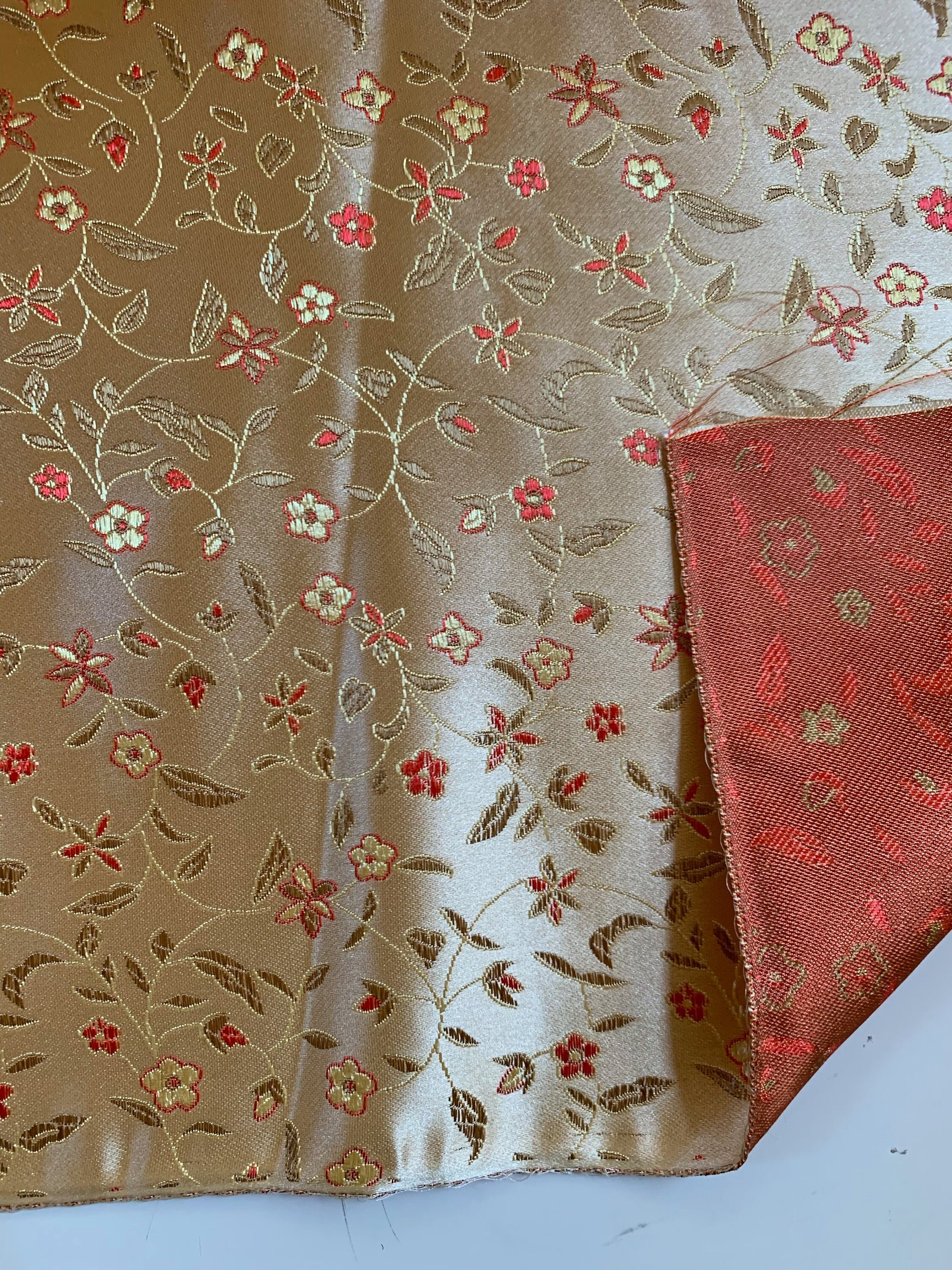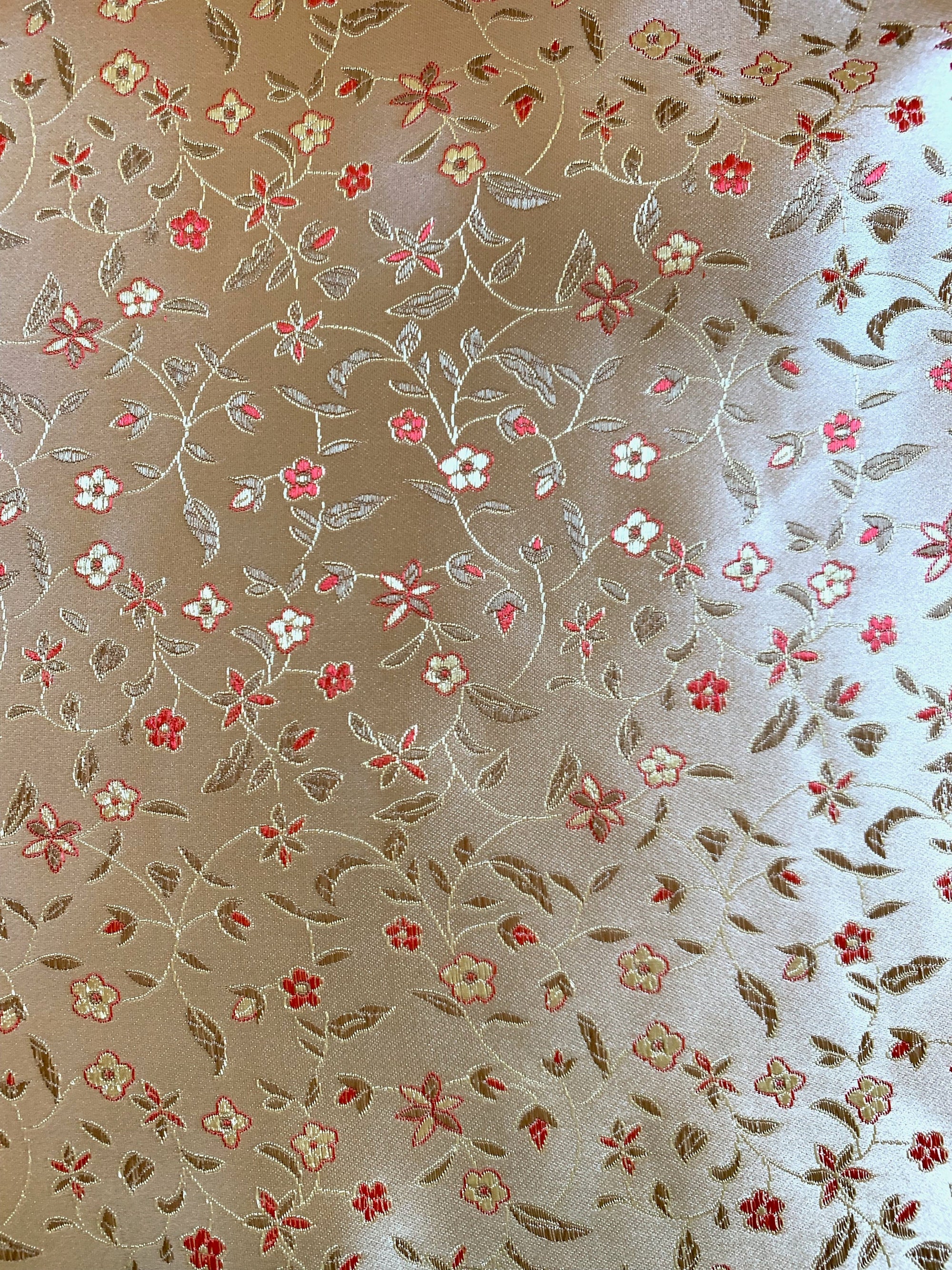 Vivienne GOLD RED Floral Brocade Chinese Satin Fabric by the Yard - 10041