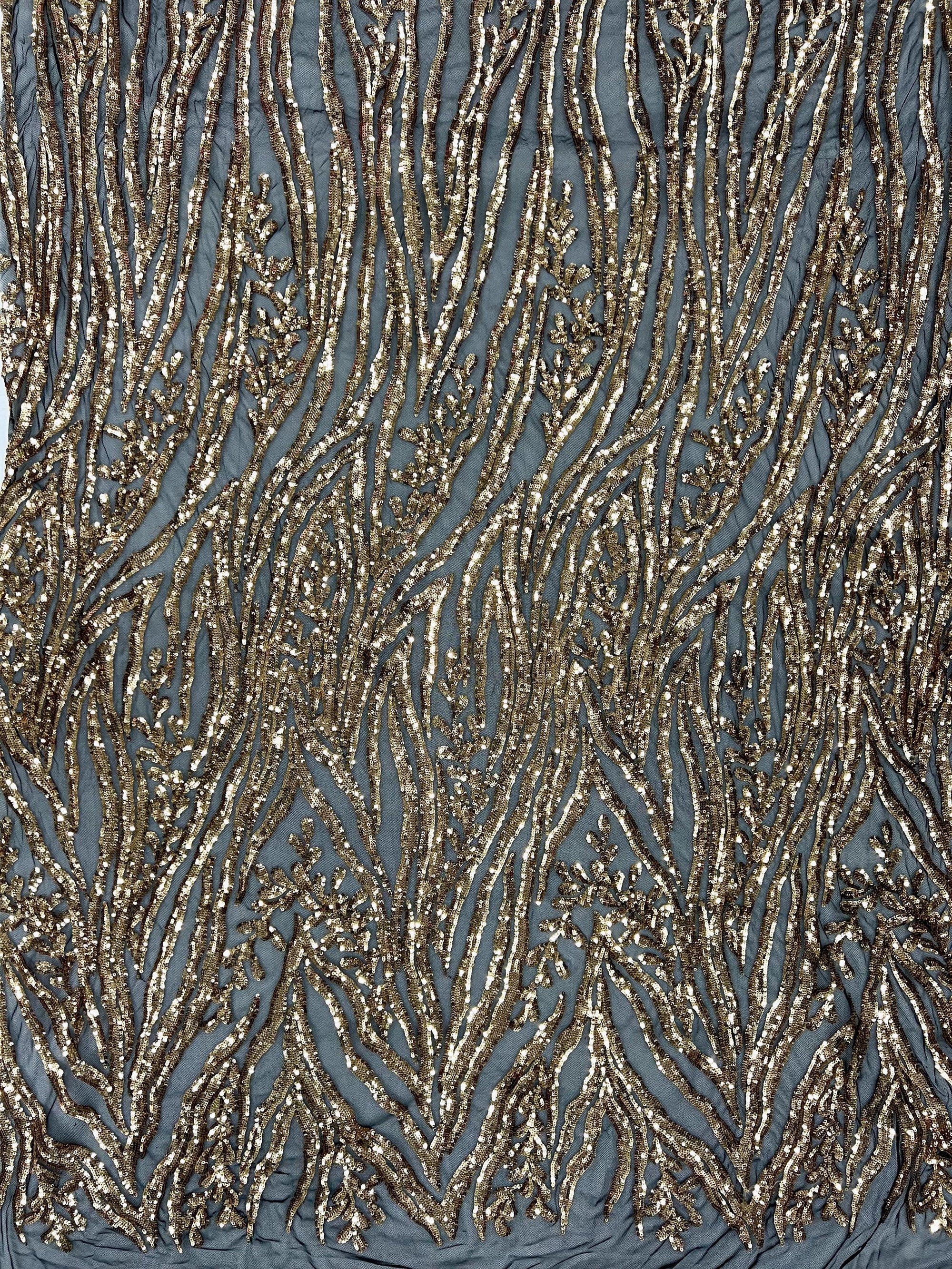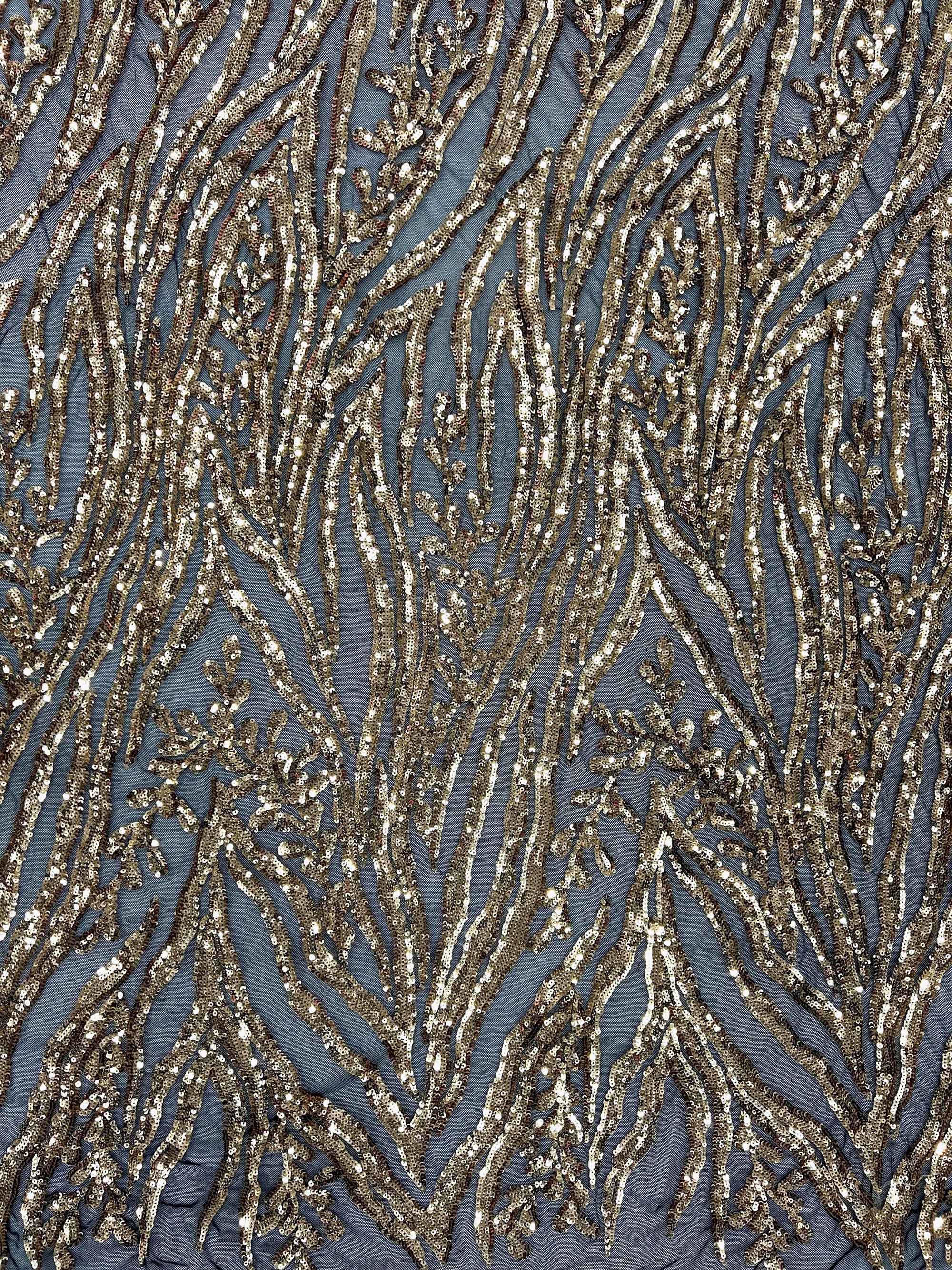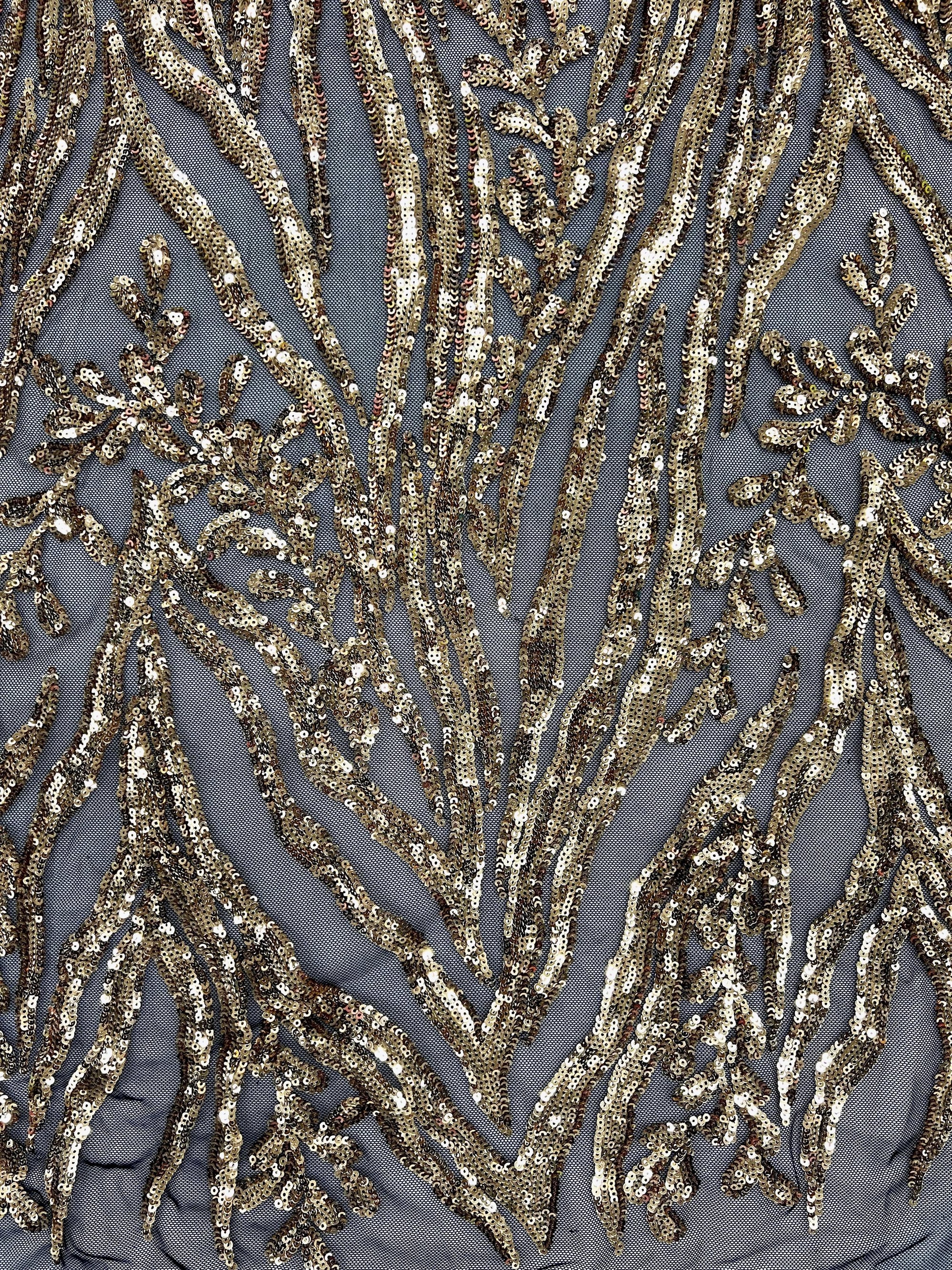 Willow GOLD Sequins on BLACK Stretch Mesh Lace Fabric by the Yard