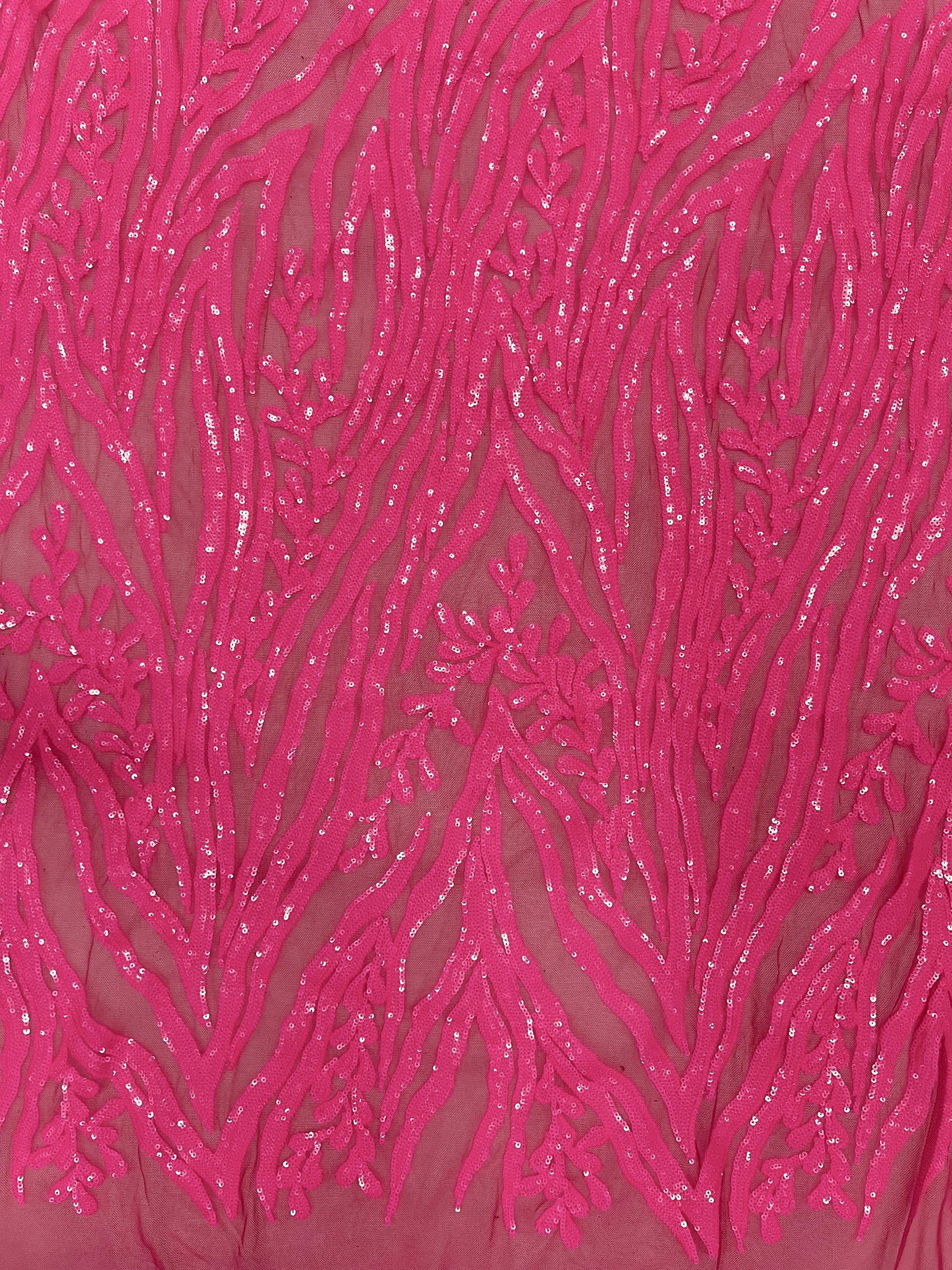 Willow HOT PINK Sequins on Stretch Mesh Lace Fabric by the Yard - 10066