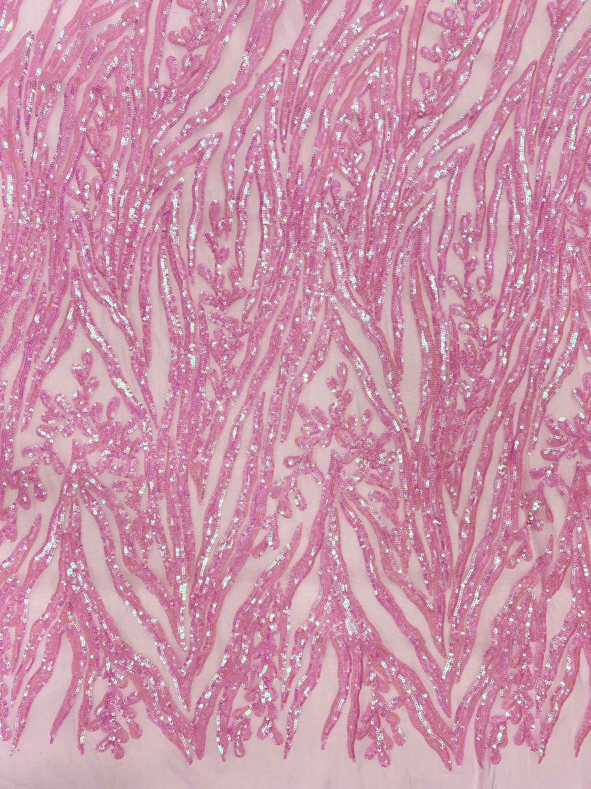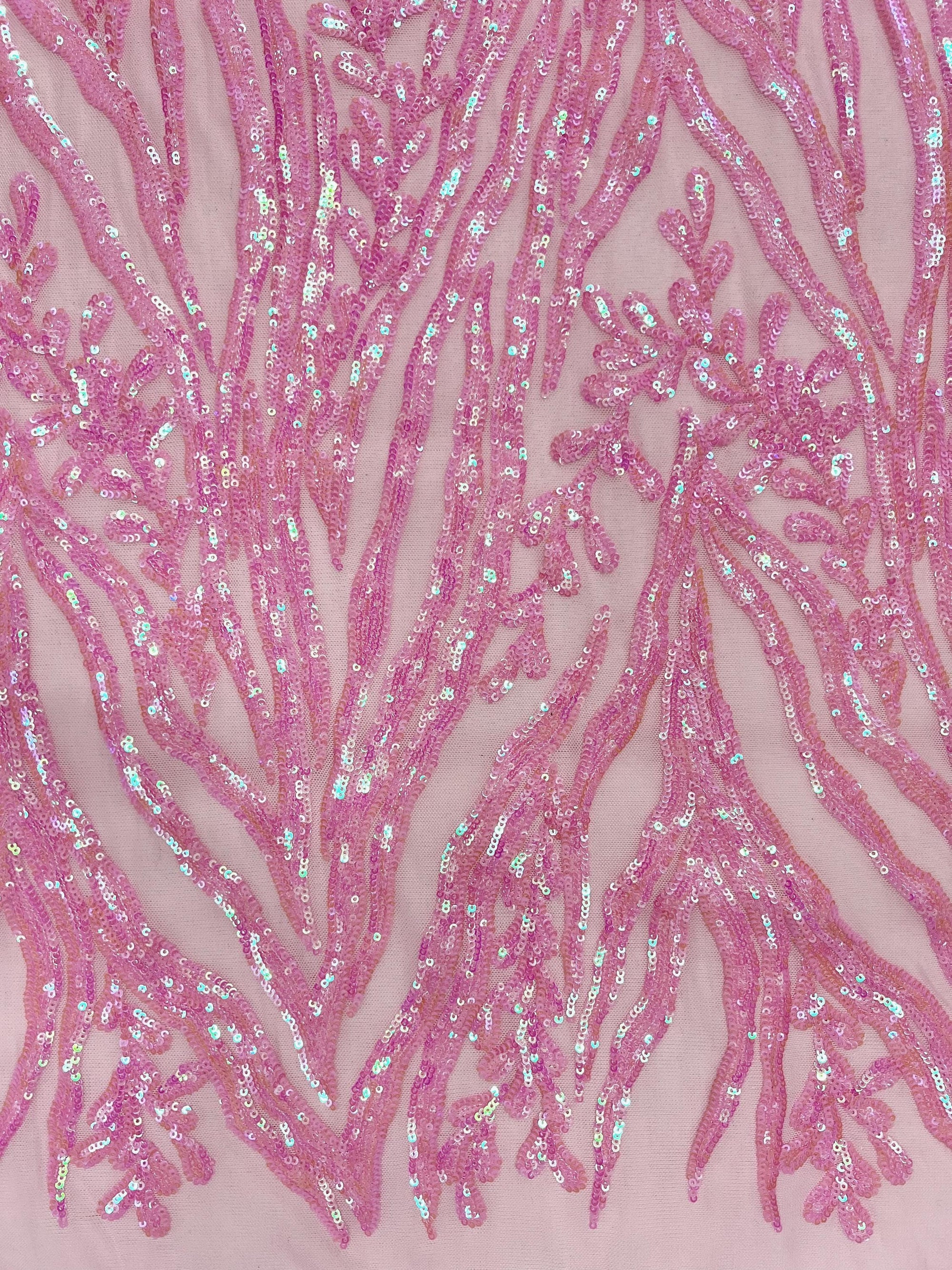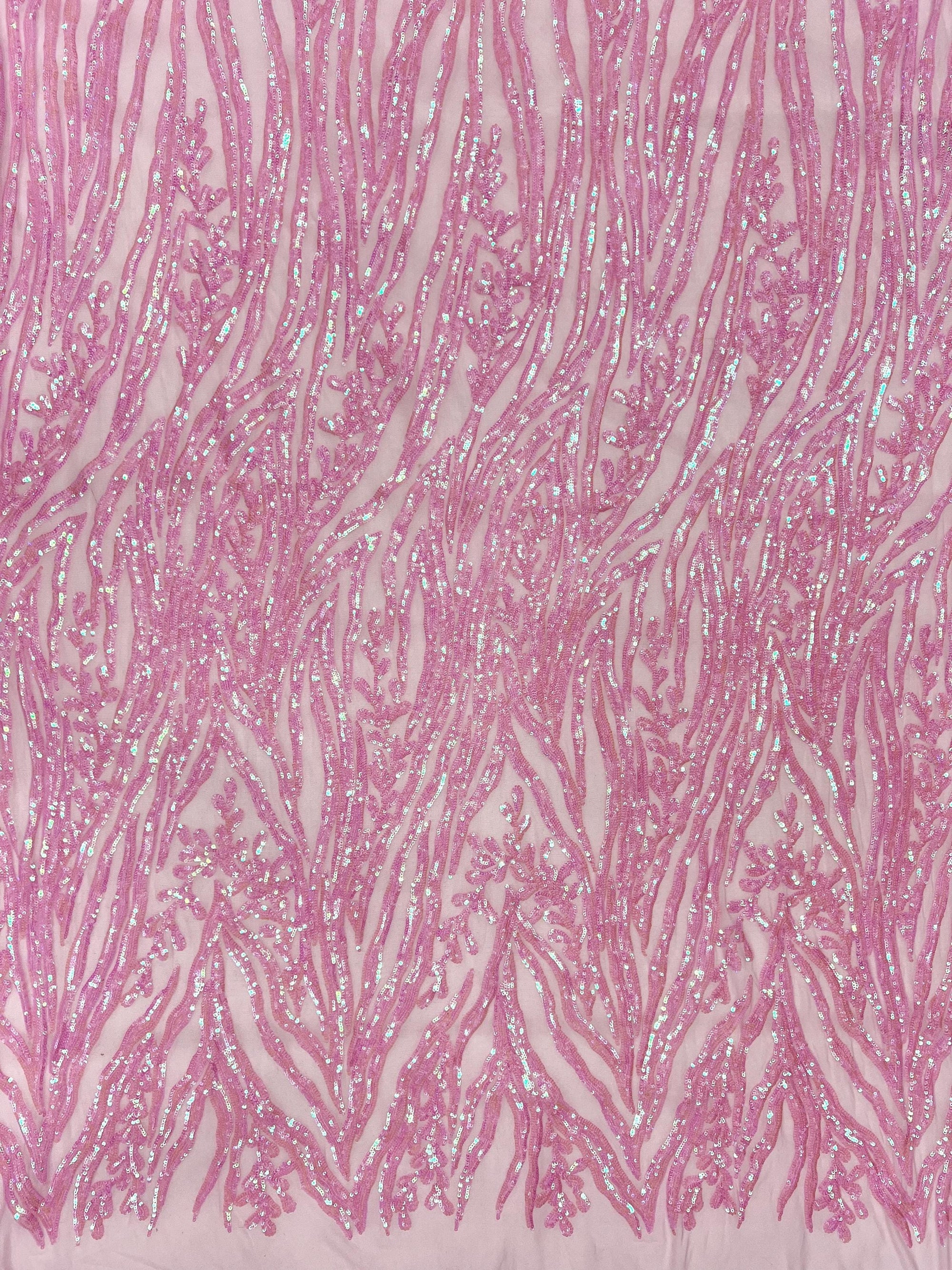 Willow IRIDESCENT PINK Sequins on PINK Stretch Mesh Lace Fabric by the Yard