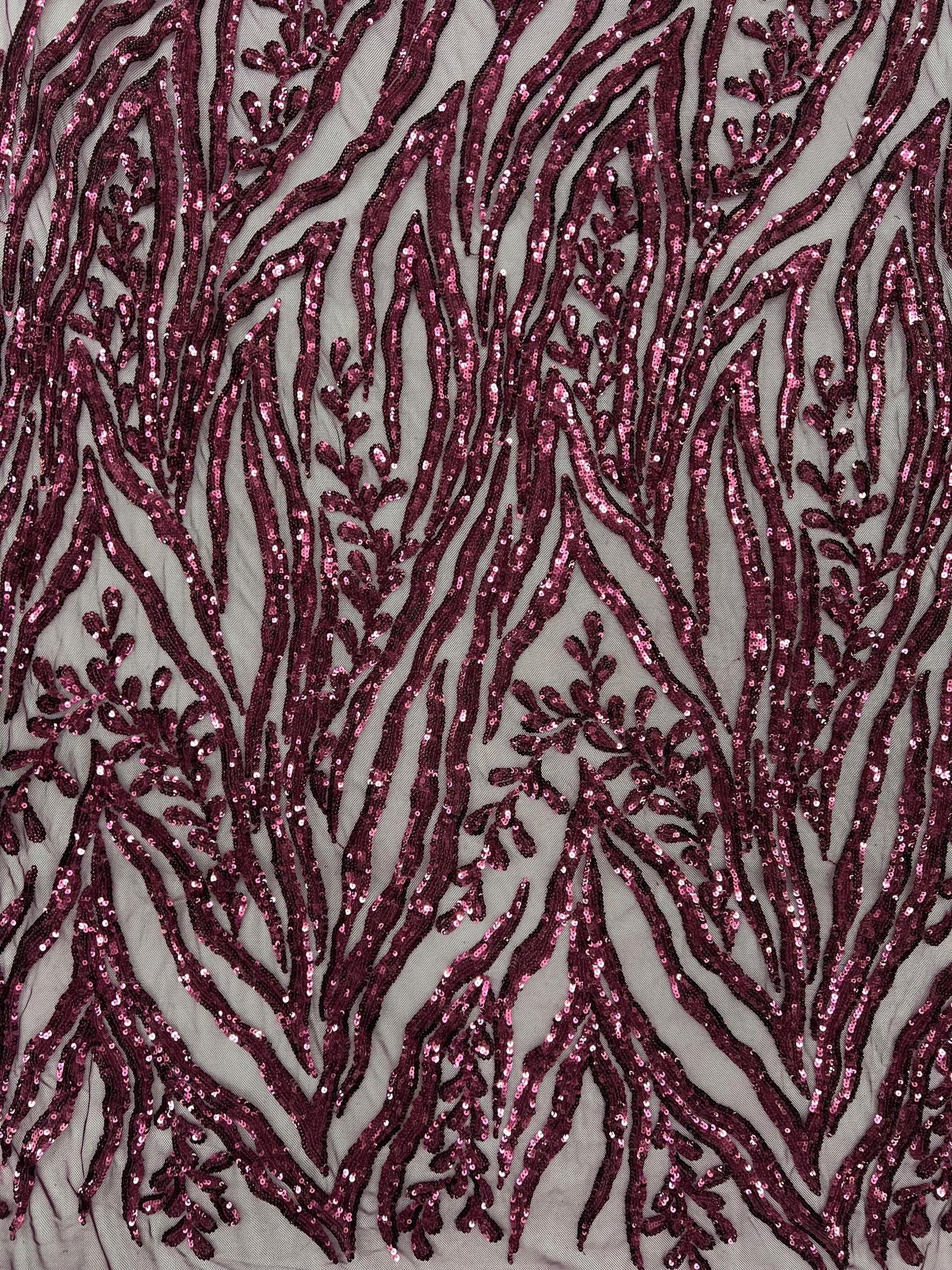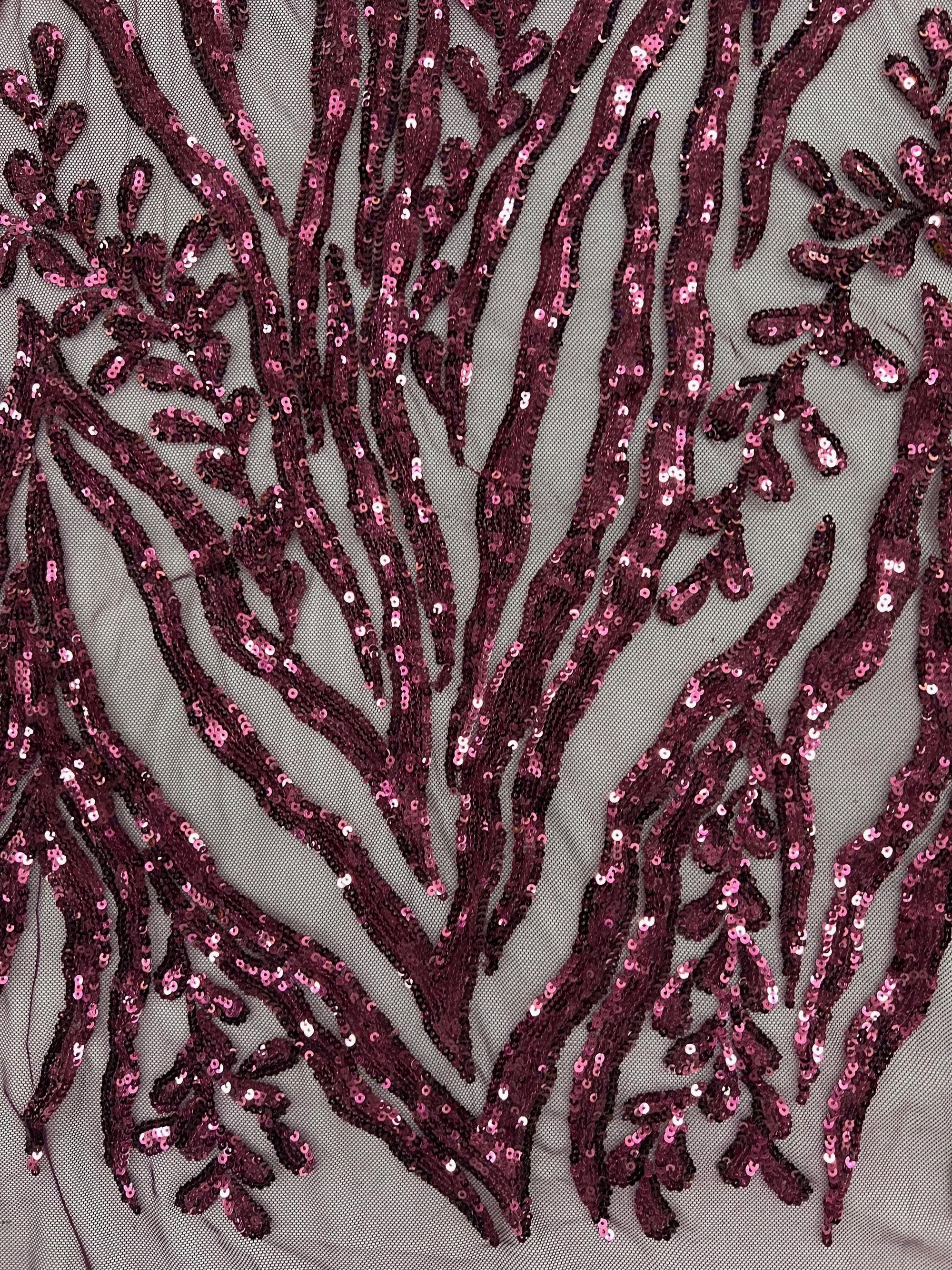 Willow PLUM Sequins on Stretch Mesh Lace Fabric by the Yard