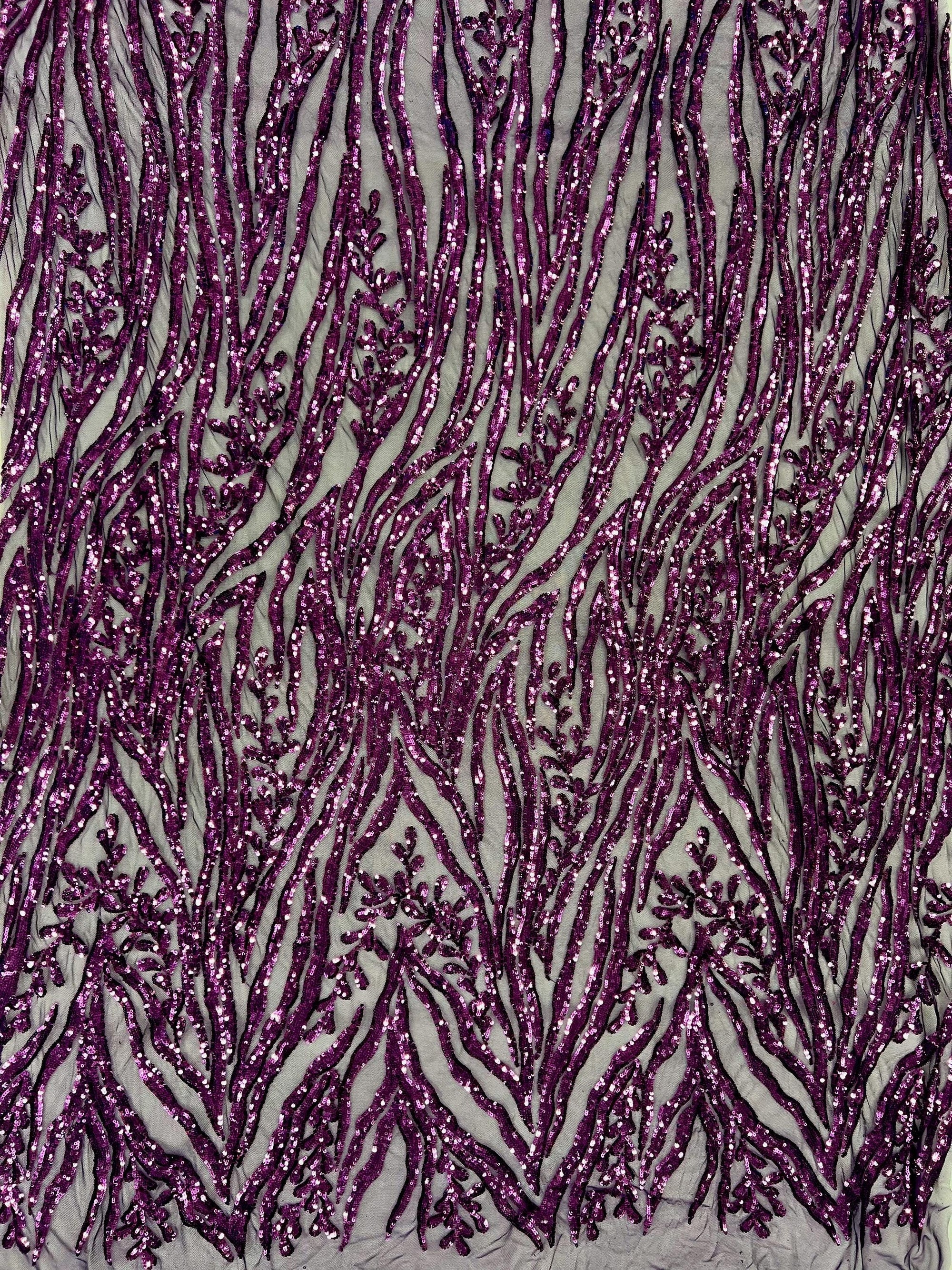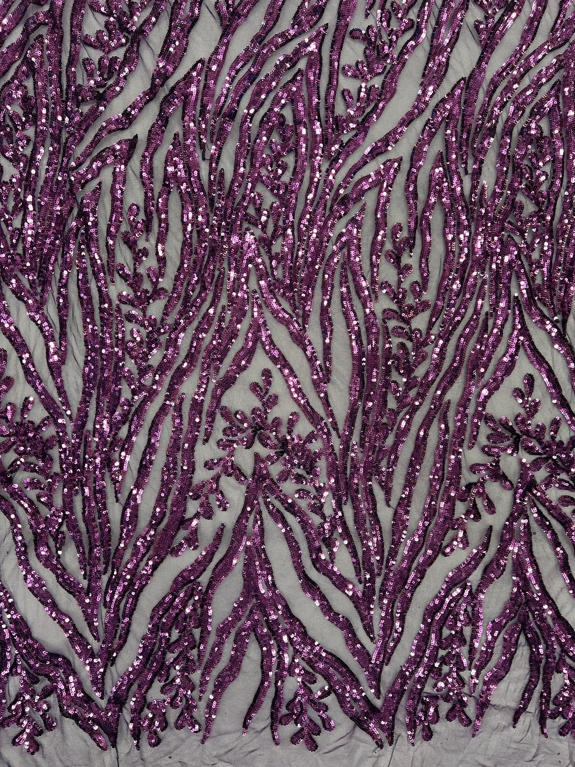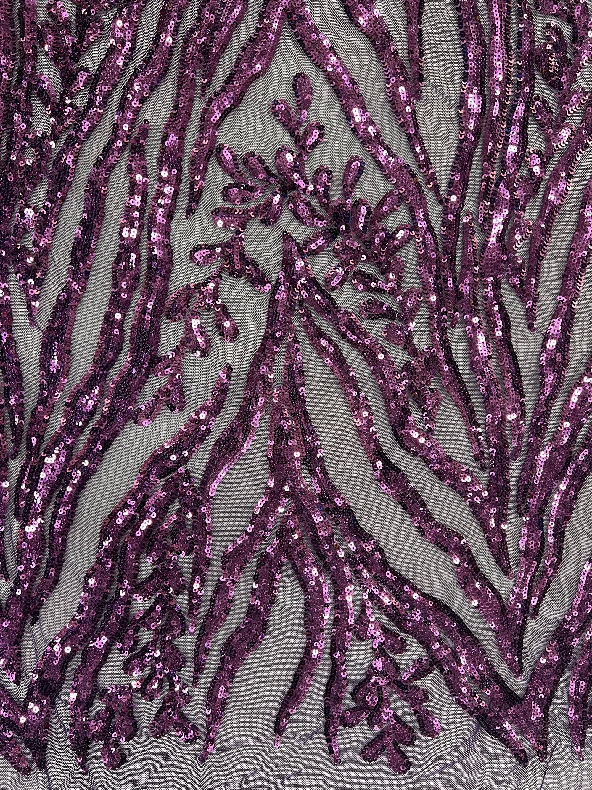 Willow PURPLE Sequins on Stretch Mesh Lace Fabric by the Yard - 10066