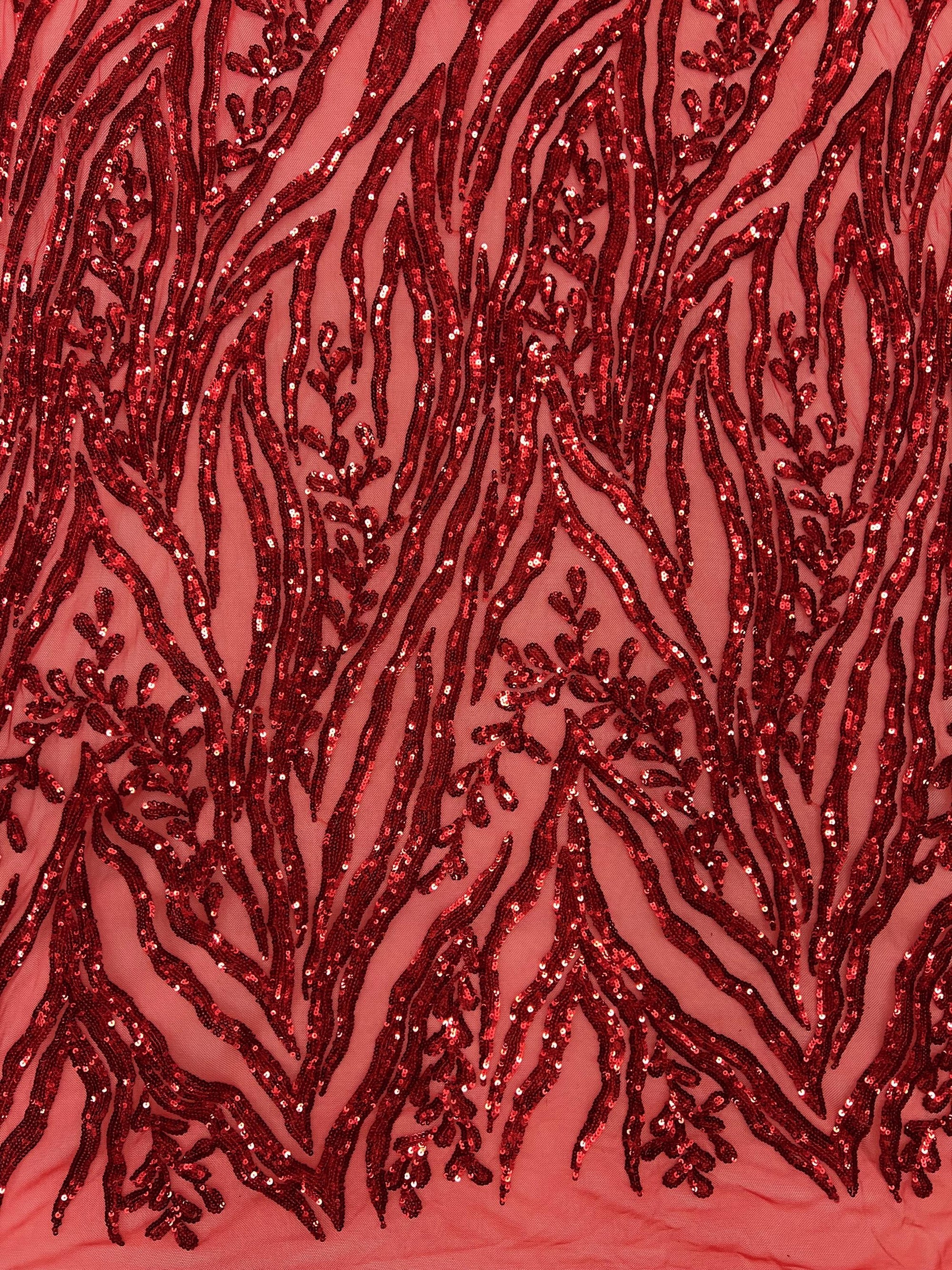 Willow RED Sequins on Stretch Mesh Lace Fabric by the Yard - 10066