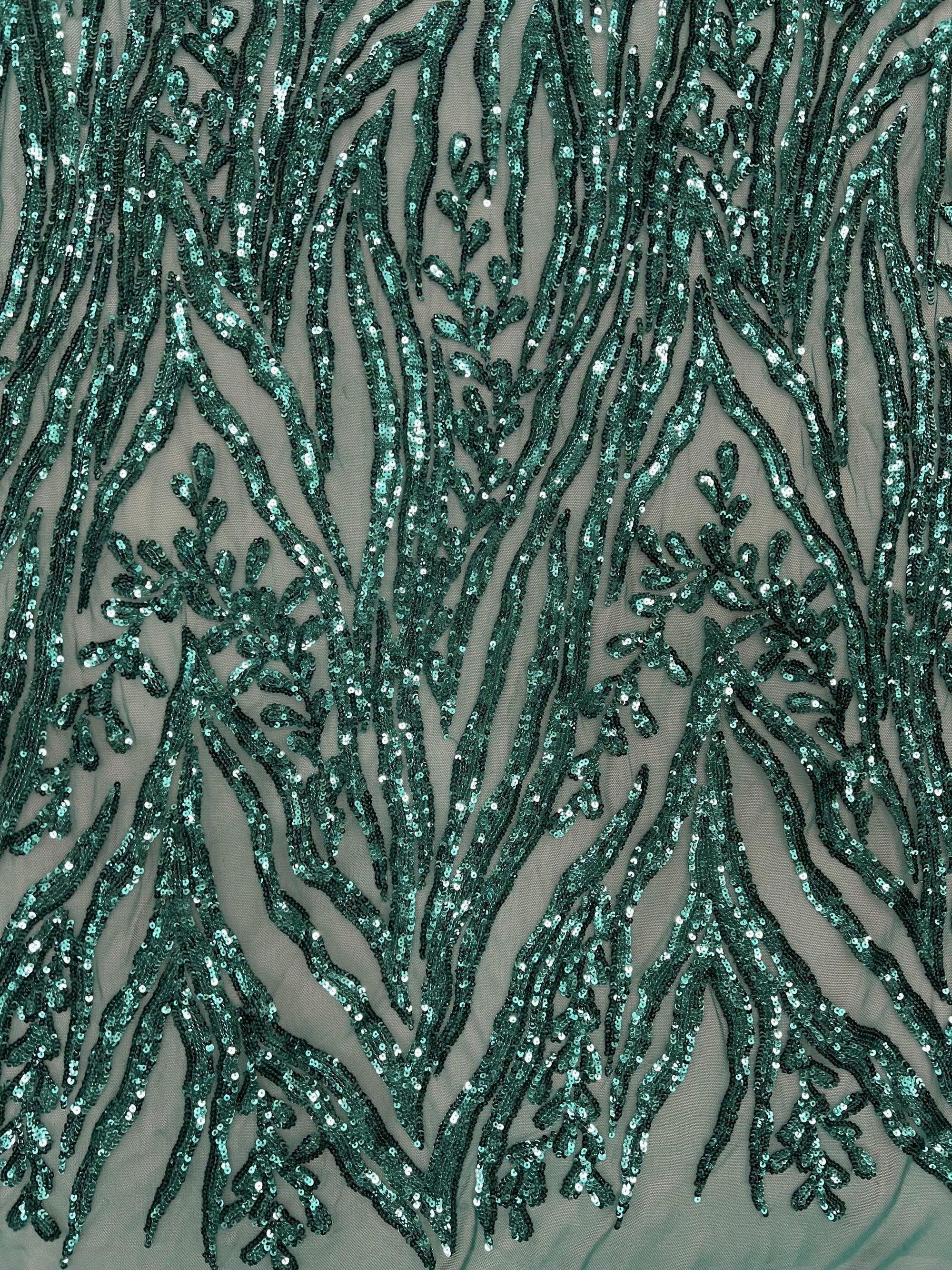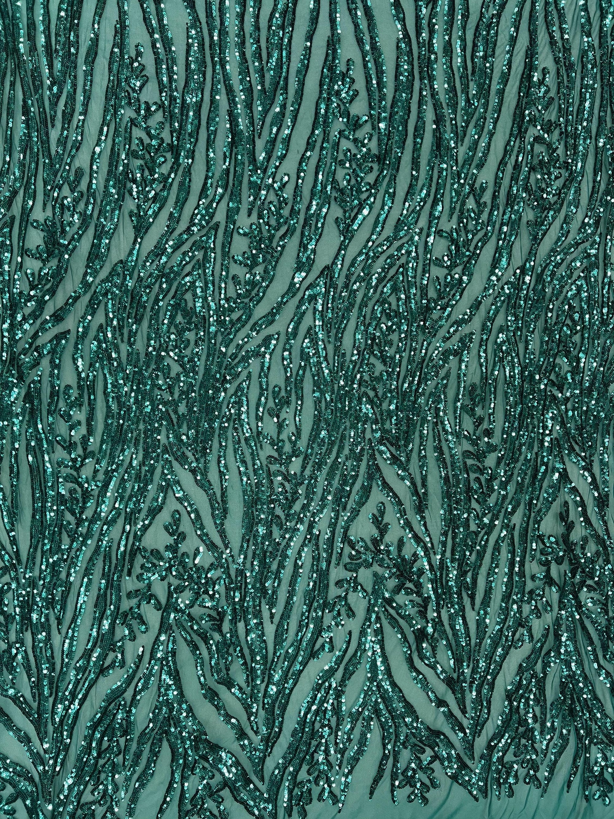 Willow TEAL GREEN Sequins on Stretch Mesh Lace Fabric by the Yard
