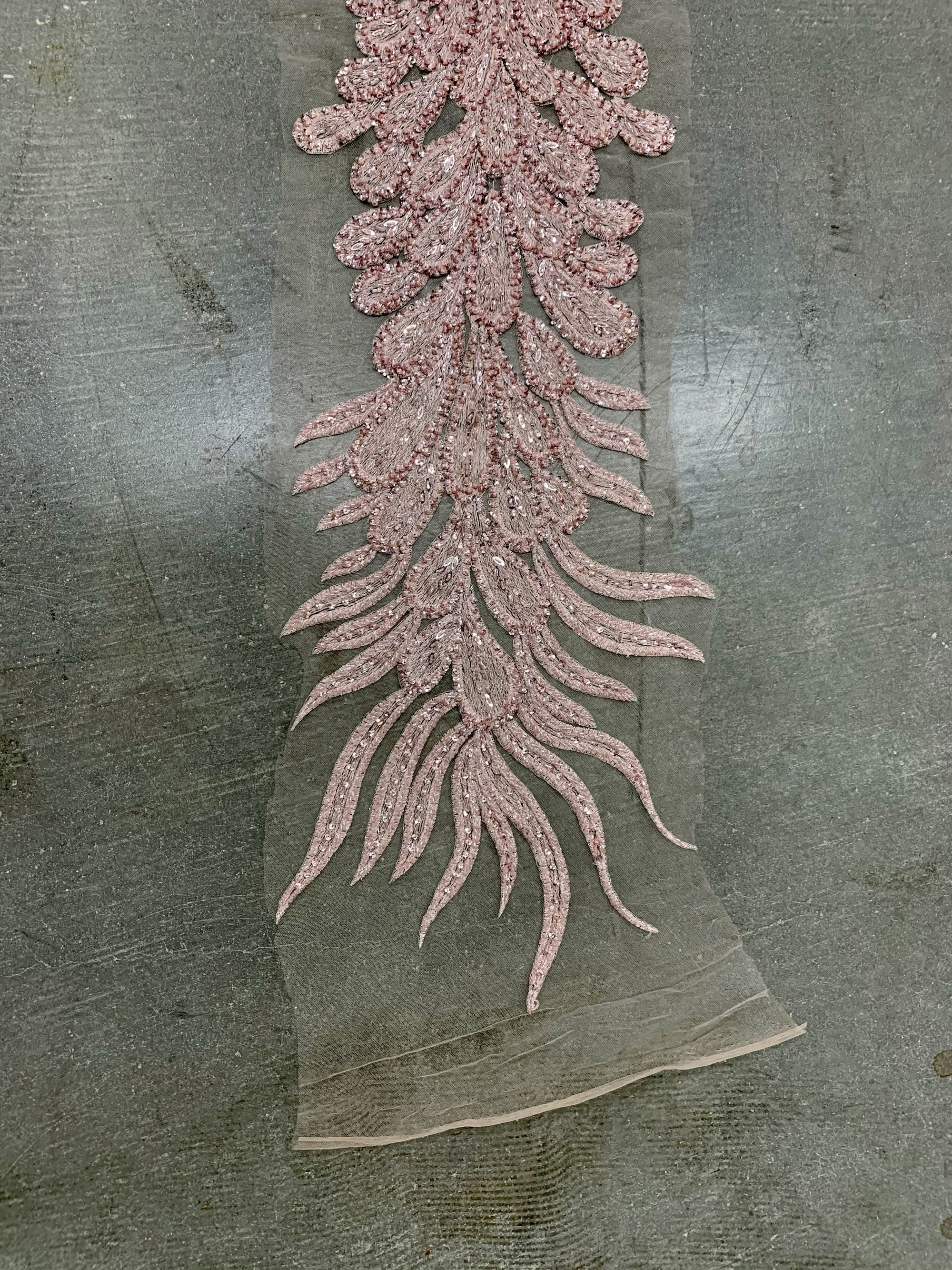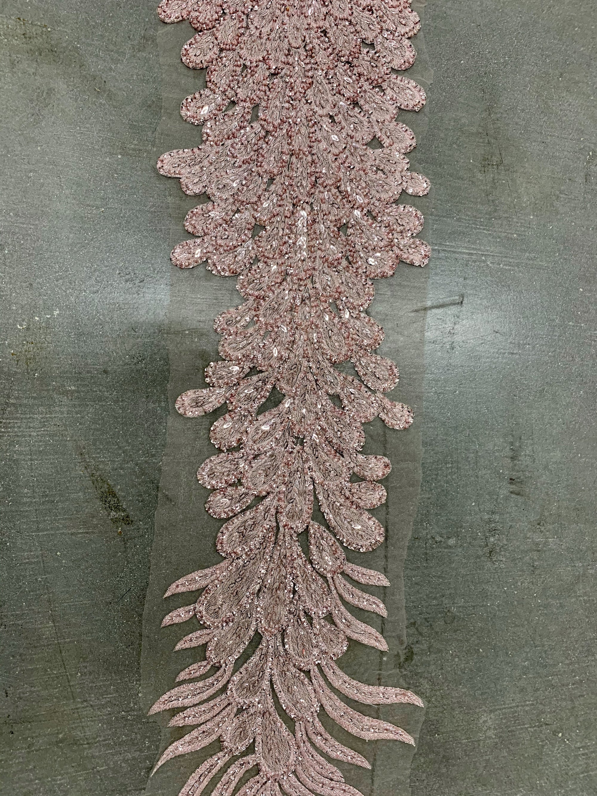 Zelda LIGHT PINK Vegas Peacock Beaded Sequins Embroidered on Mesh Lace Fabric by Panel - 10200