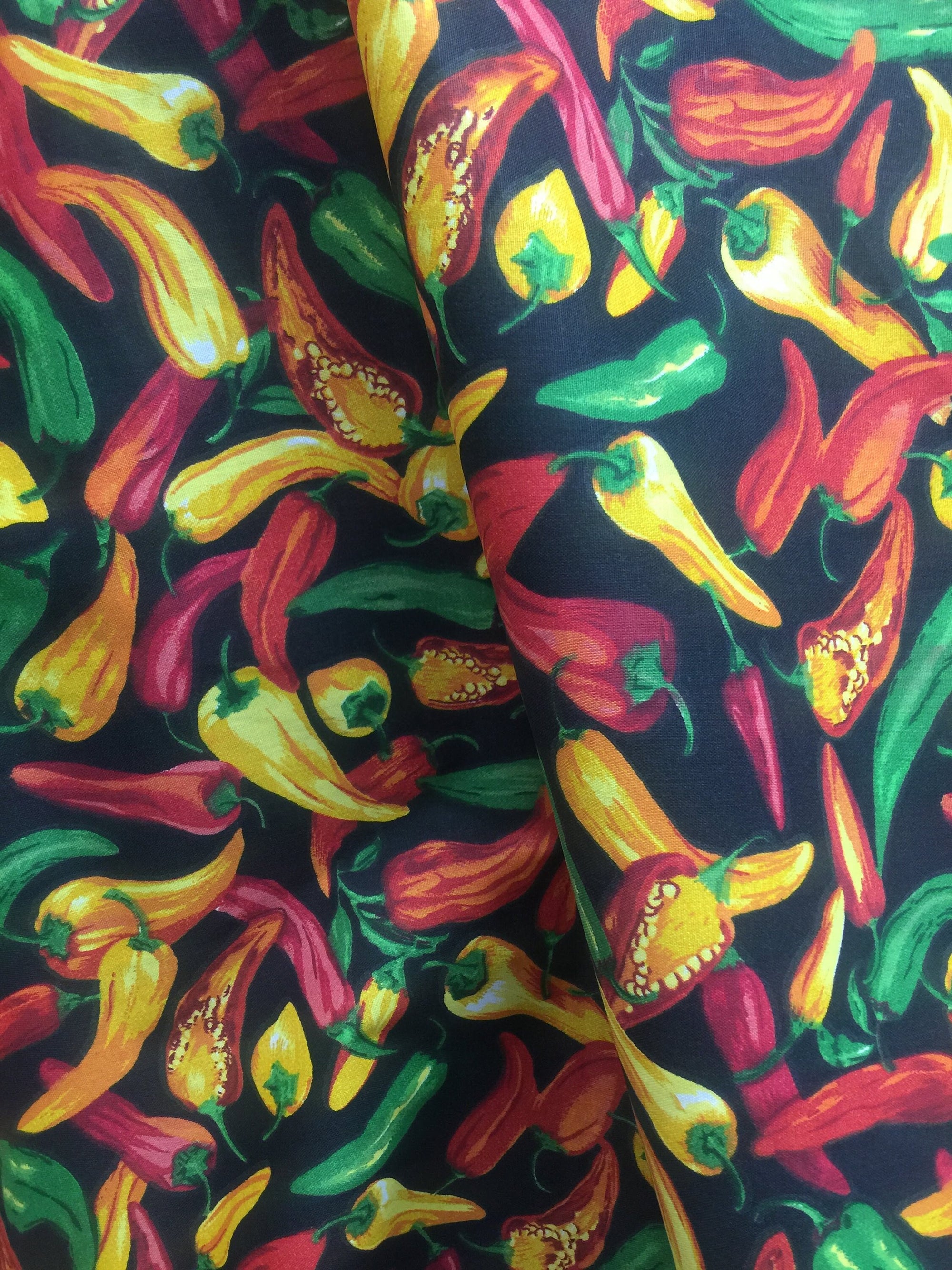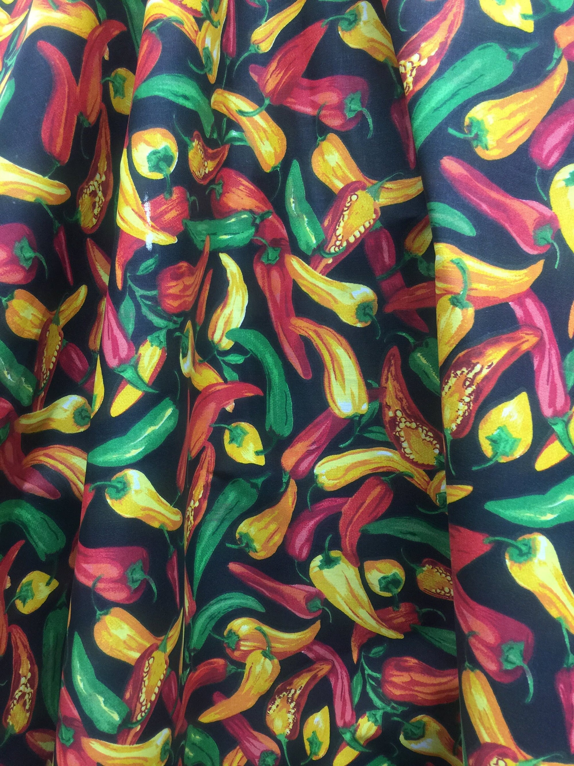 Amira BLACK Printed Chilies Polyester Cotton Fabric by the Yard - 10106