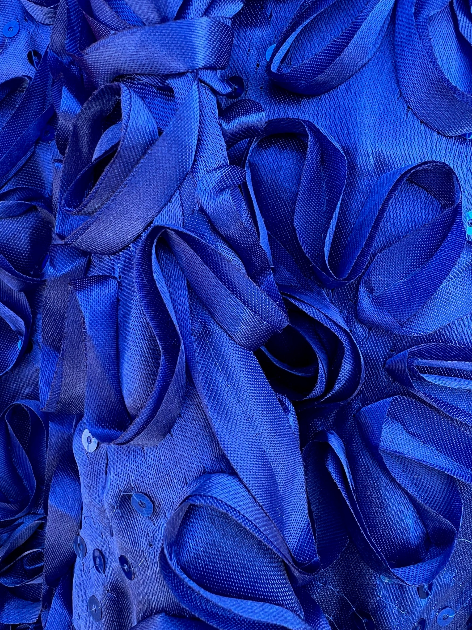 Allie ROYAL BLUE 3-D Floral Polyester Satin Rosette with Sequins Fabric by the Yard - 10051