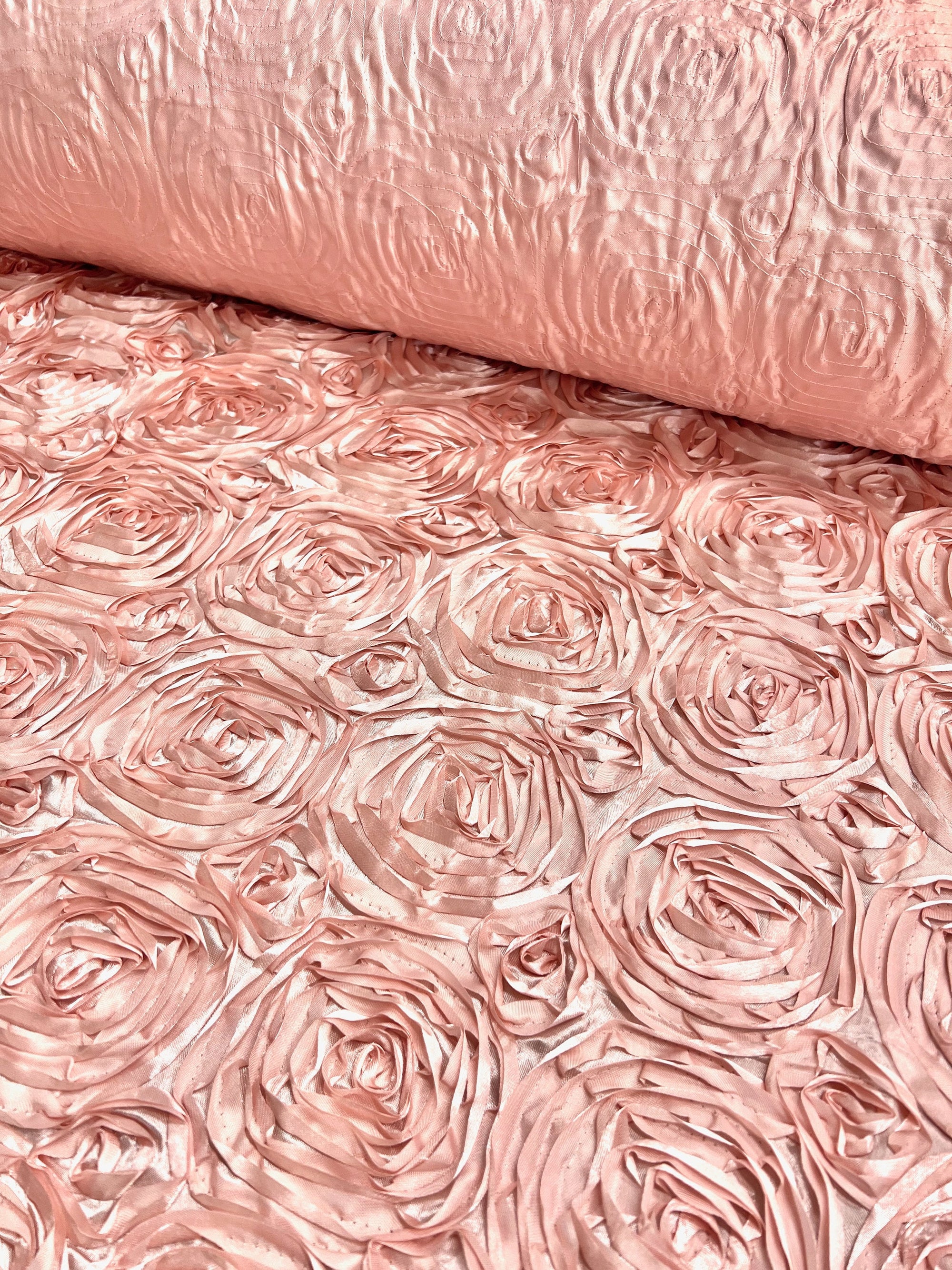 Paige BLUSH PEACH 3D Floral Polyester Satin Rosette Fabric by the Yard - 10028