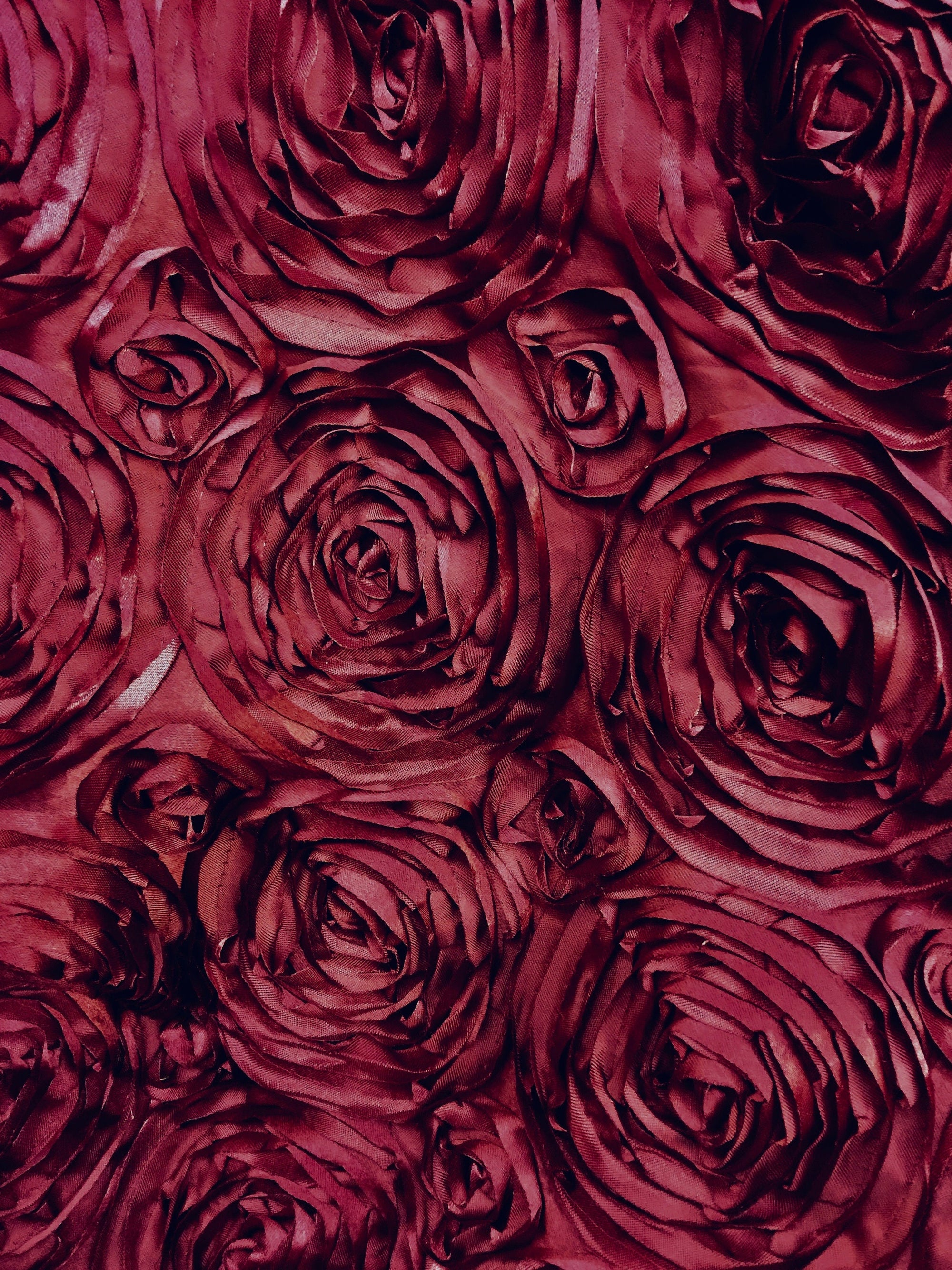 Paige BURGUNDY 3D Floral Polyester Satin Rosette Fabric by the Yard - 10028