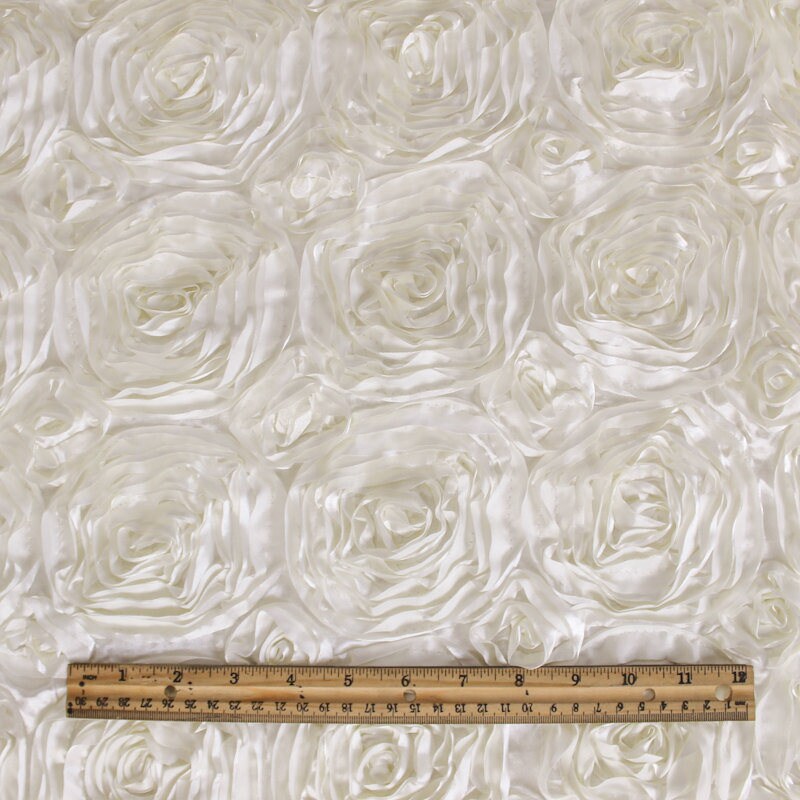 Paige IVORY 3D Floral Polyester Satin Rosette Fabric by the Yard - 10028